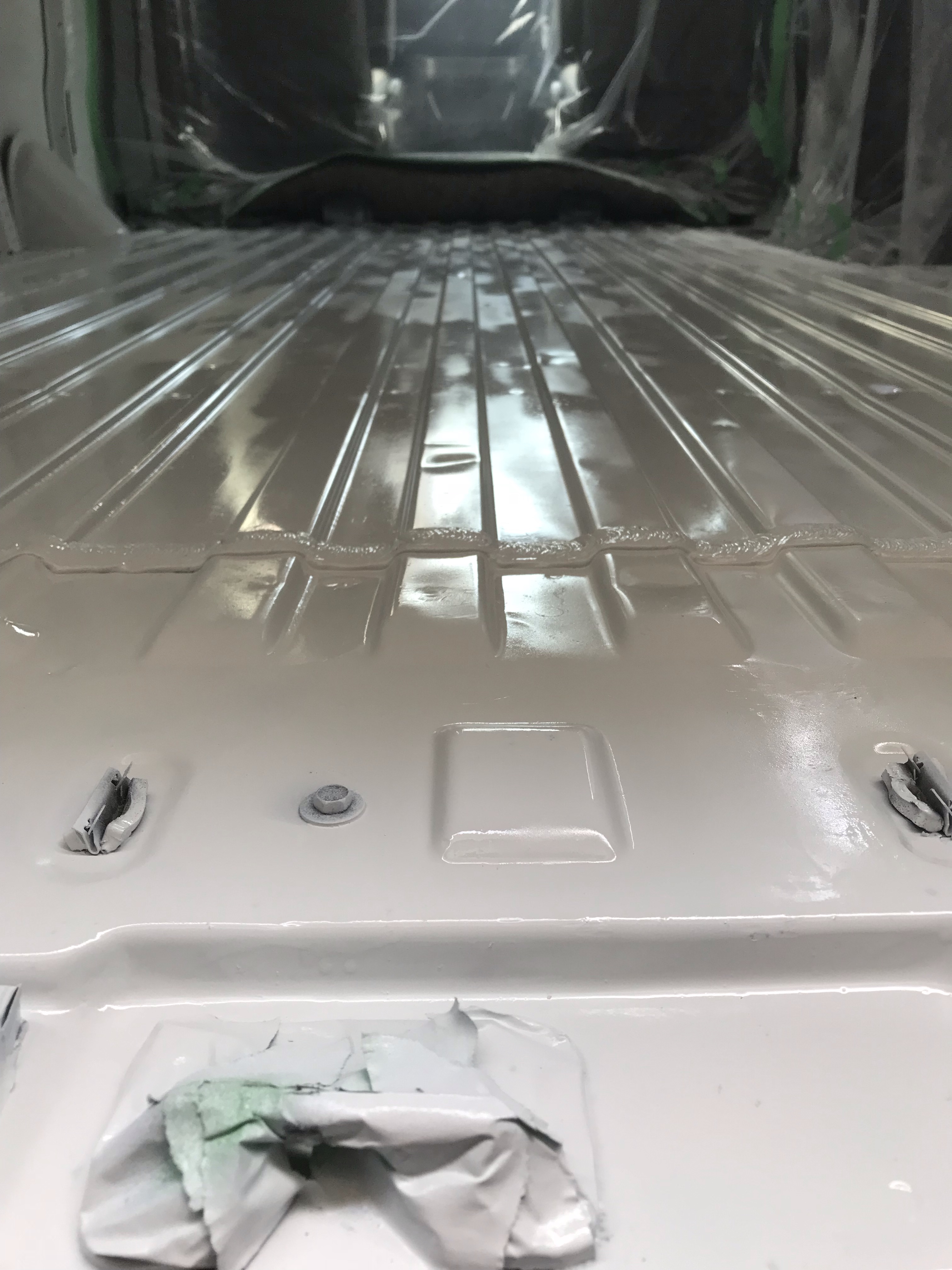 With bits of paint and metal dust spread throughout the van interior I vacuumed and gave the floor and walls another good wipe down.