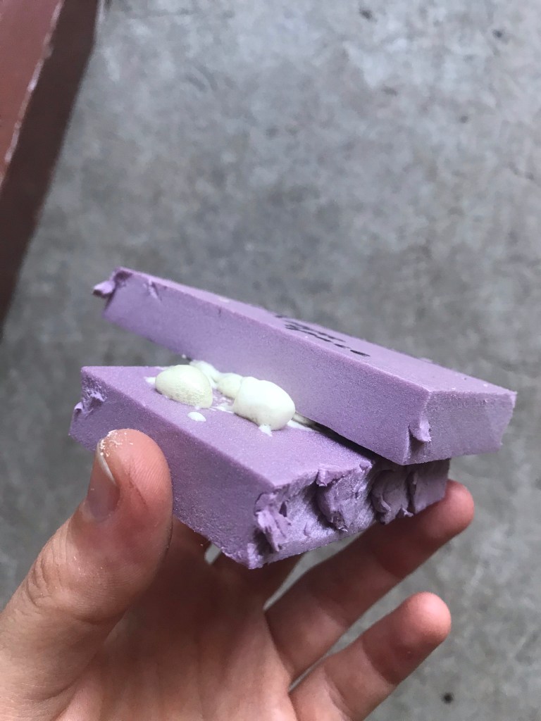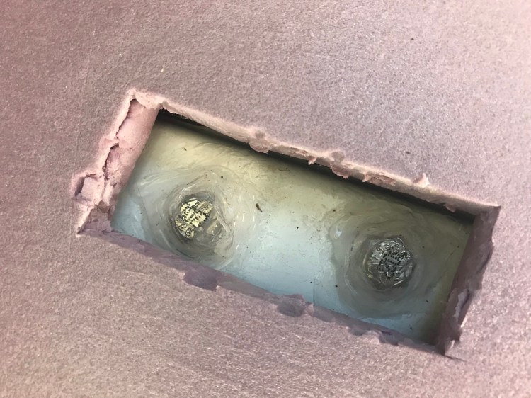 Armed with experience and knowledge I moved forward with the Gorilla construction adhesive, using it relatively sparingly. This time I did a test between pieces of foam using the construction adhesive (and Great Stuff Gaps And Cracks for comparison). Gorilla was a much stronger hold (I couldn’t get the pieces apart!) and less messy. The Great Stuff pushed the foam pieces apart despite a light weight on them while drying and expanded beyond the edges.
