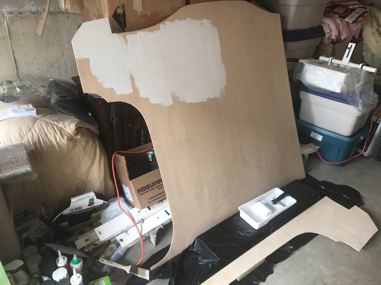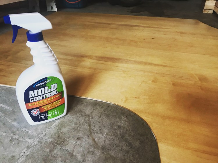 With mold being a concern for organic materials, especially those in dark confined spaces, I treated my subfloor to prevent any future mold. I got the idea to spray my subfloor with Concrobium Mold Control and then paint with a mold-proof paint from Gnomad Home. The process was pretty straightforward: I sprayed all subfloor puzzle pieces with the Concrobium, allowed it to dry for 24 hours, then painted all wood surfaces with the Zinsser Bulls Eye primer. I used two 946mL cans to paint all sides of wood meant for about 50sq/ft of floor space in the van (I did two coats, one right after the other).
