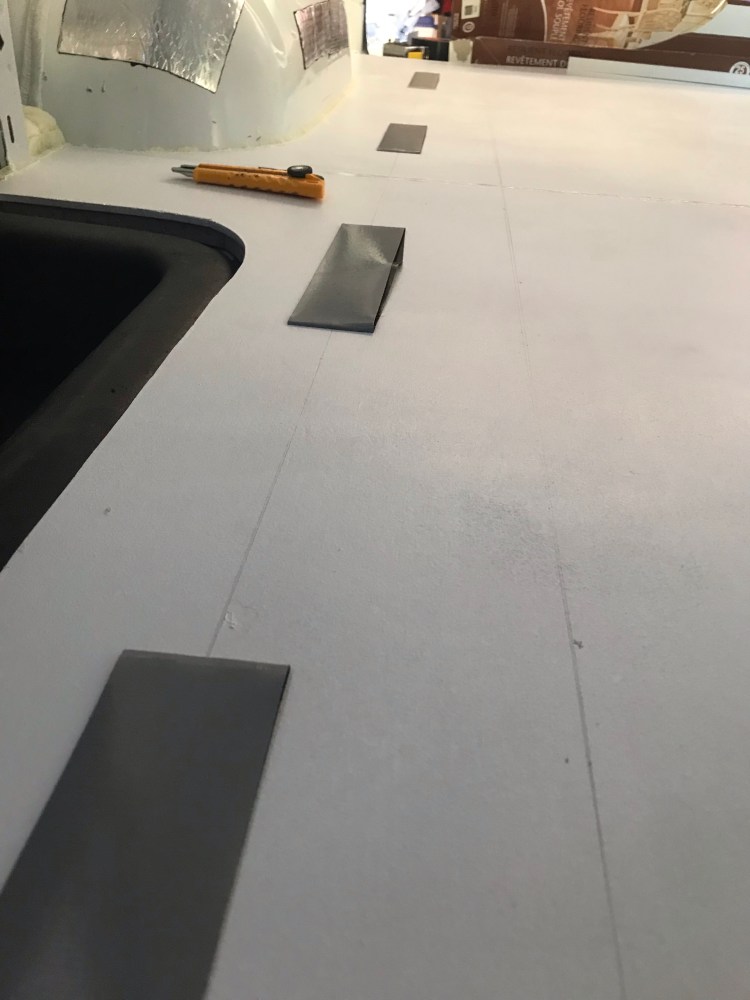 There were a few seams that did not fit together properly where I had cut make shift pieces so I used the clear silicone sealant to carefully and discreetly seal these spots. They were all at the sides and where I will have shelves or my bed so they shouldn’t be noticeable.