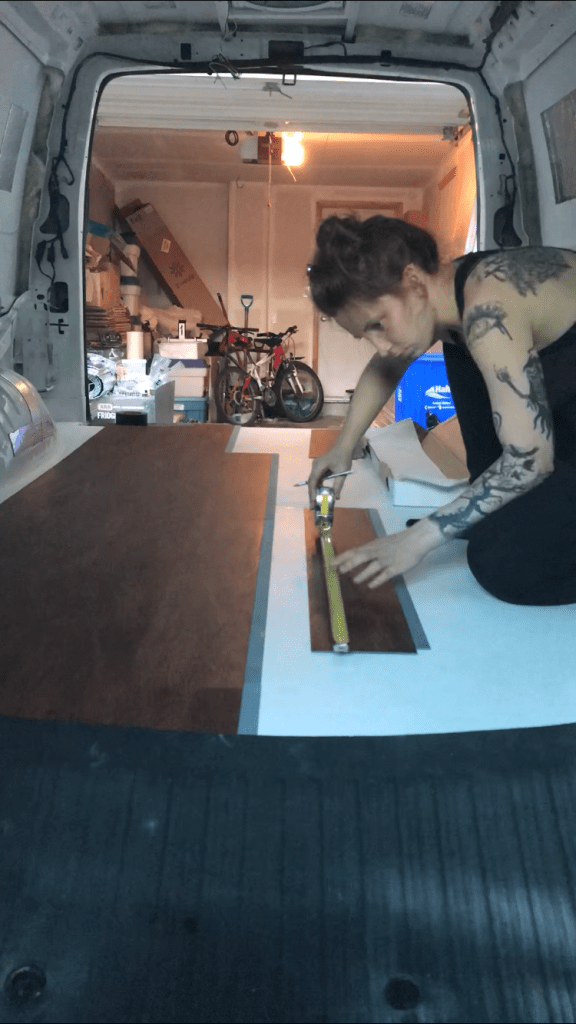 The template phase is not a difficult one, but it is fairly time consuming. I understand why many van lifers aren’t a fan! My patience was tried, but I turned on some good music or a good podcast (currently listening to And That’s Why We Drink) and got to work.