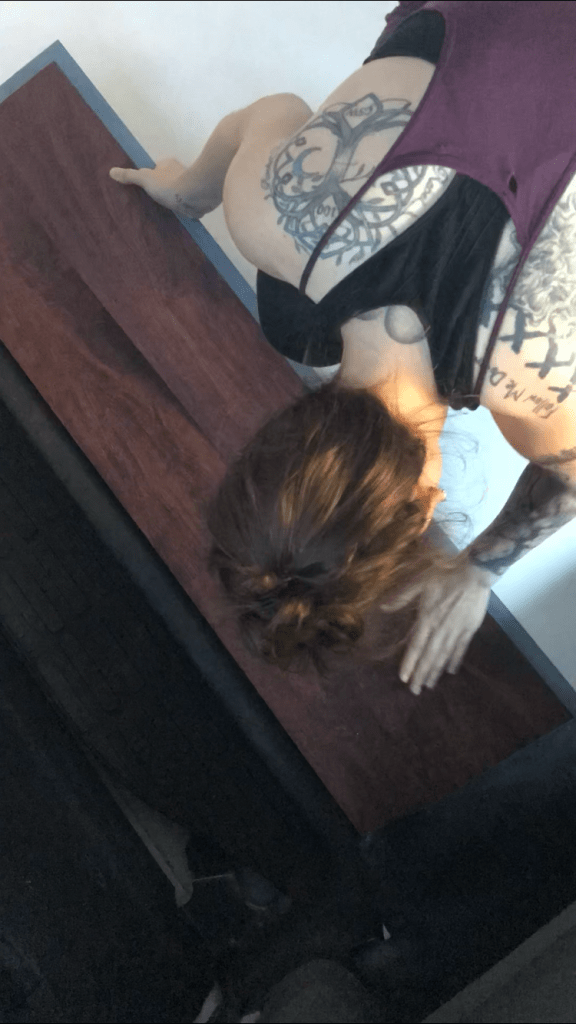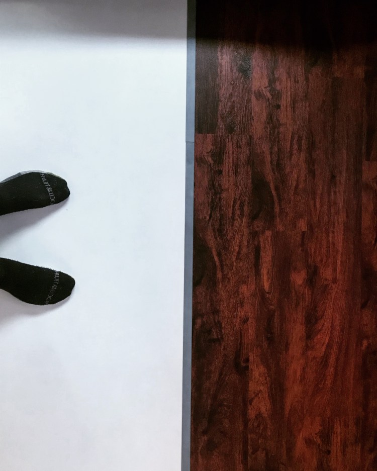 Finally – the FUN part – I could now start on my vinyl flooring! But first, I left a little piece of me…