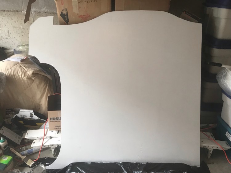 I probably used the slowest method for making templates, though I felt it would be most accurate (I’m a perfectionist and this project is teaching me the pros and cons to that). I had some left over moving boxes and cut them into quarters. I placed the straight edges against the wall anomalies (e.g., wheel well), took a tape measure, and measured at various points the “mirrored” distance from edge of cardboard to wall, etc. then applied those to the cardboard and connected the dots to create my cut lines. In retrospect it’s definitely the more complicated way! Oh well.