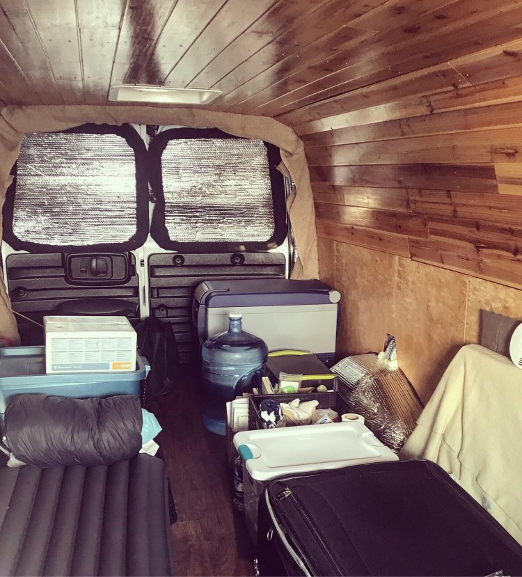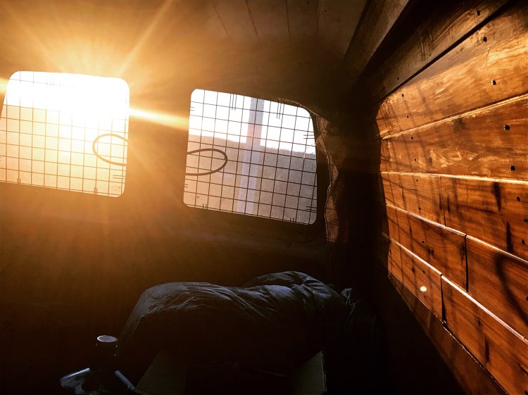 Night van: room made for sleeping pad/ bag