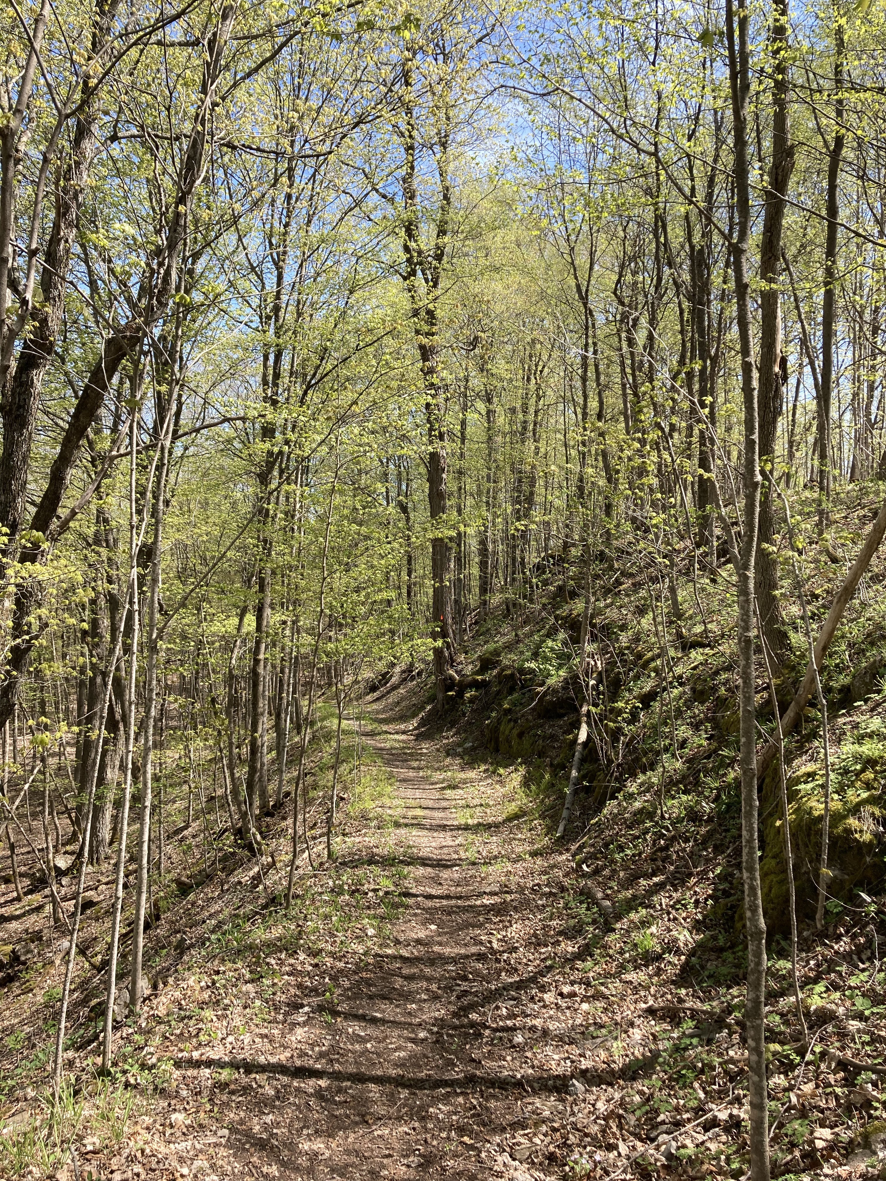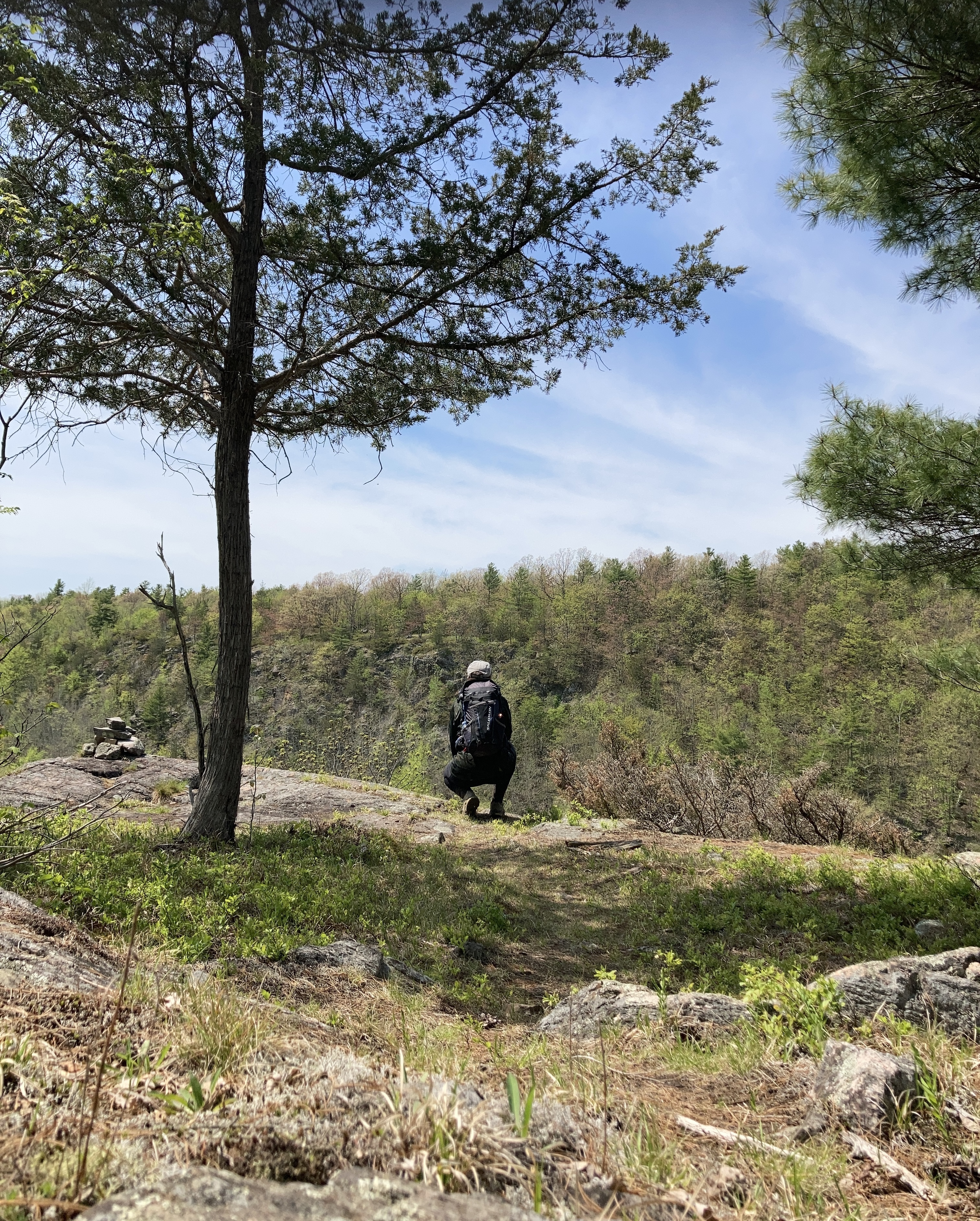 I got a late start to the day, so I planned a shorter hike. Which was fortuitous, as there were, again, a lot of trees down on the trail. I guess I hit these trails in that sweet spot post-storm / prior to clearing. (You can’t predict everything on a hike!) On the bright side, this was my last day before hitting the last stretch of the RT which followed solely multi use trails. I didn’t run into any poison ivy, but I did find one tick. Mosquitoes and black flies were around. My mantra became: worry about not stepping on poison Ivy, check for ticks after. The easiest thing was to climb on top of the tree trunks, but sometimes I had to go under/ through the small branches and leaves, if not around.