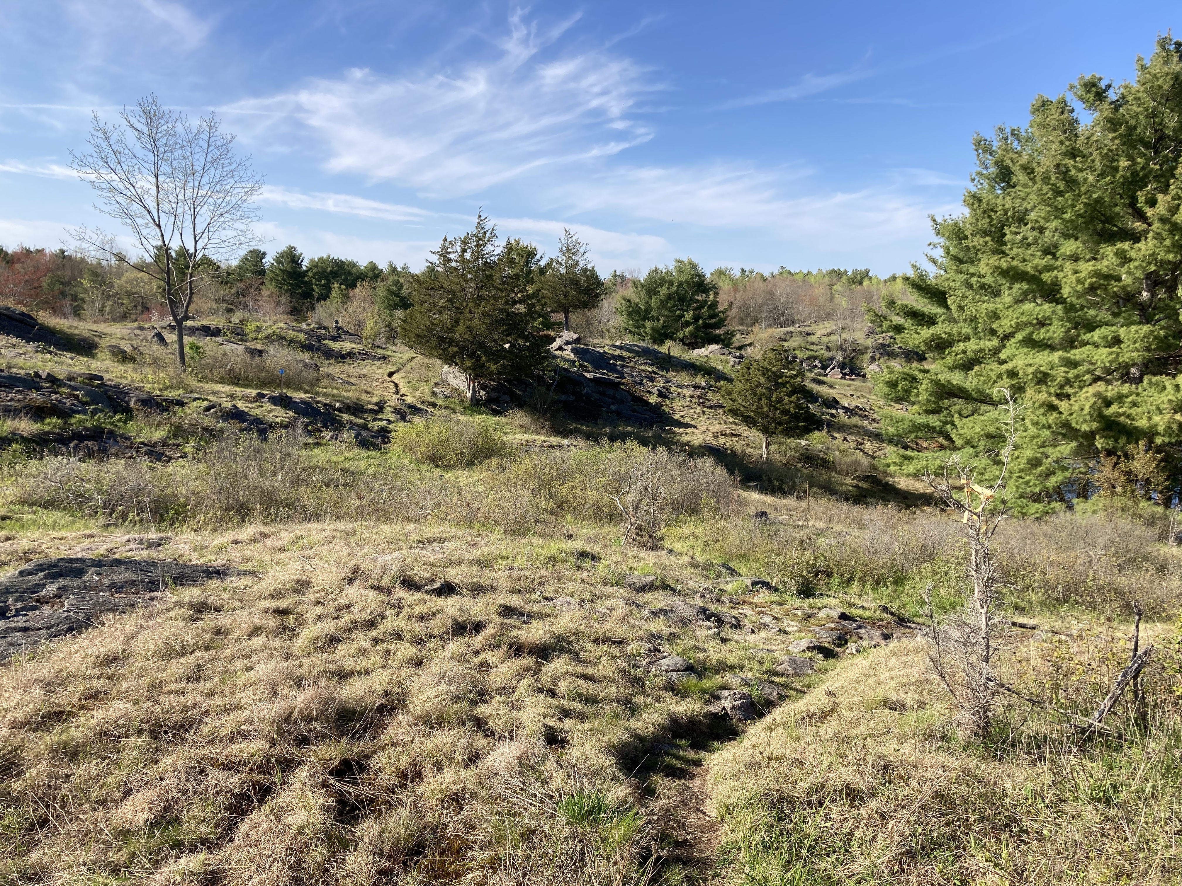 The hike began with a portion of private land, then joined the Cataraqui Trail for about 7km, before entering forest that meandered through dry elevations, low bogs, and around lakes.