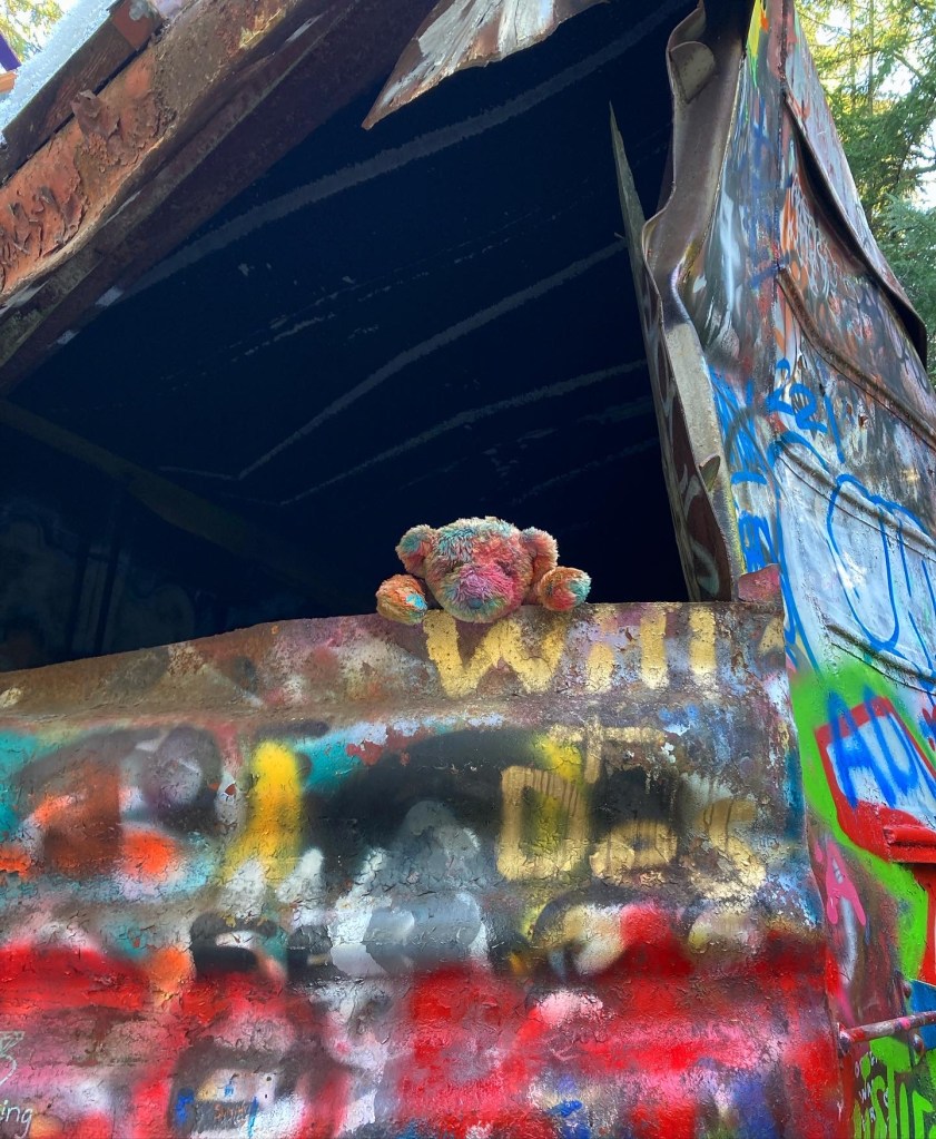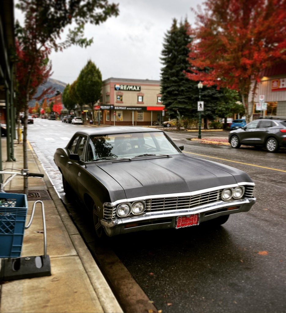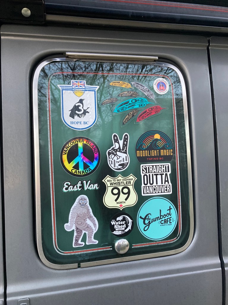 Another way to support the places we pass through is by exploring their downtown hubs and picking up some souvenirs (I can’t tell you how many stickers, postcards, magnets, mugs, shot glasses, and candles I amassed). And I quite liked downtown Revelstoke. I came across a kindred spirit in van form, as well as a car that had me looking for Dean Winchester. I visited some shops and even stumbled upon an outdoors store called Eagle Pass – which was also something from my Dad’s book. It was an outdoor store in Cranbrook in my Dad’s book, but didn’t exist there in real life (I looked!) – so finding it by chance in a different small BC town was a pleasant surprise.