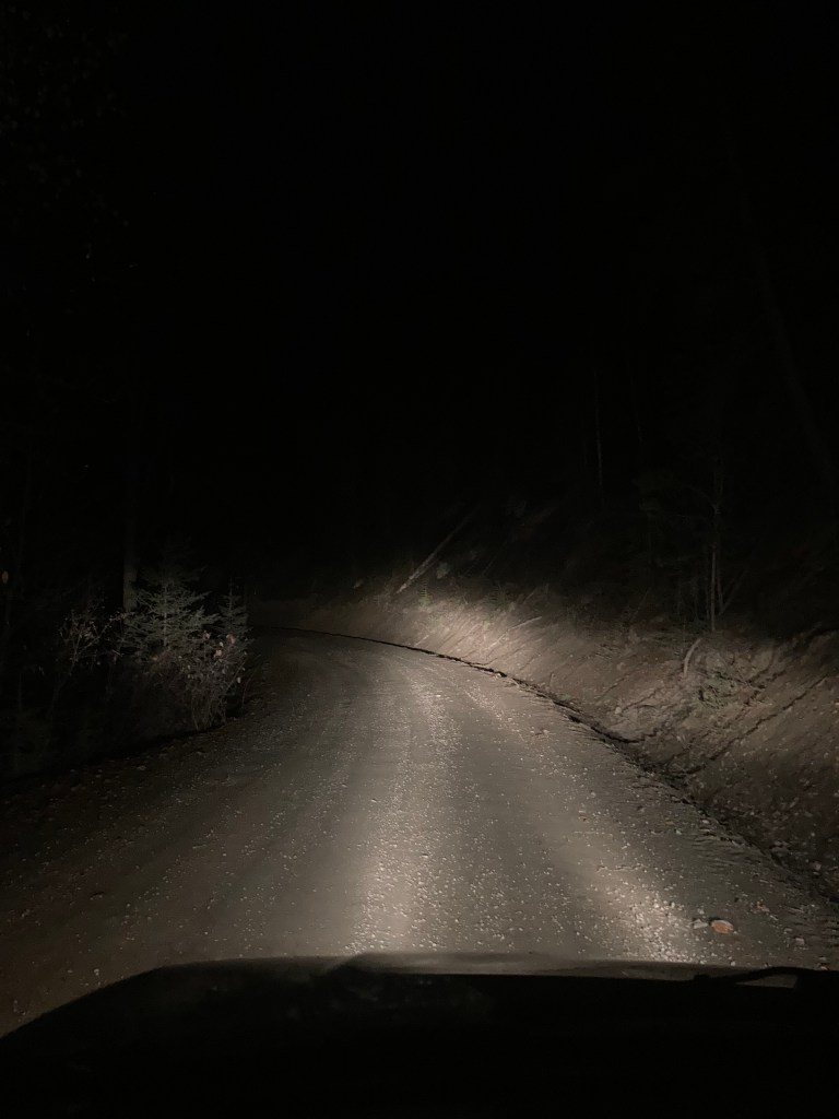 I had a crown land spot lined up (so much relief was felt upon arrival), and found my way there in the dark (several other groups were there when I arrived, with a fire going, so I tried to park at a respectful distance, while unable to see much). I woke up to a dusting of snow on the roads.