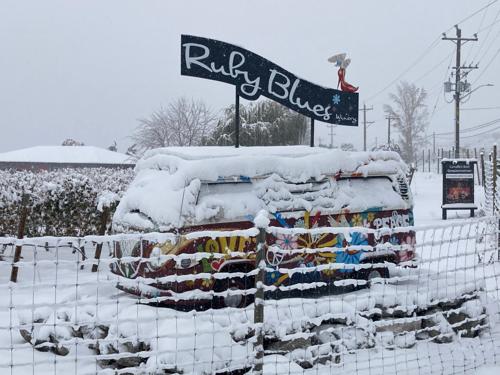 The roads were fairly atrocious out of Kelowna and through Penticton. They got better later in the day when the plows finally came through. But there was very poor visibility, so I didn’t get to take in views as I drove or do much in the towns.