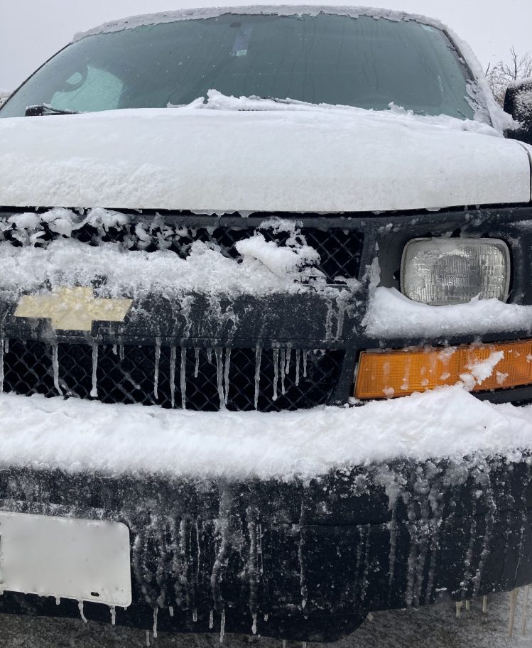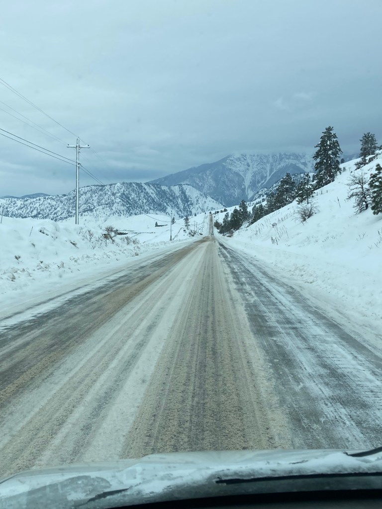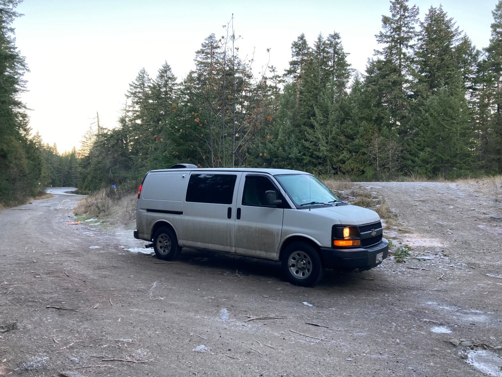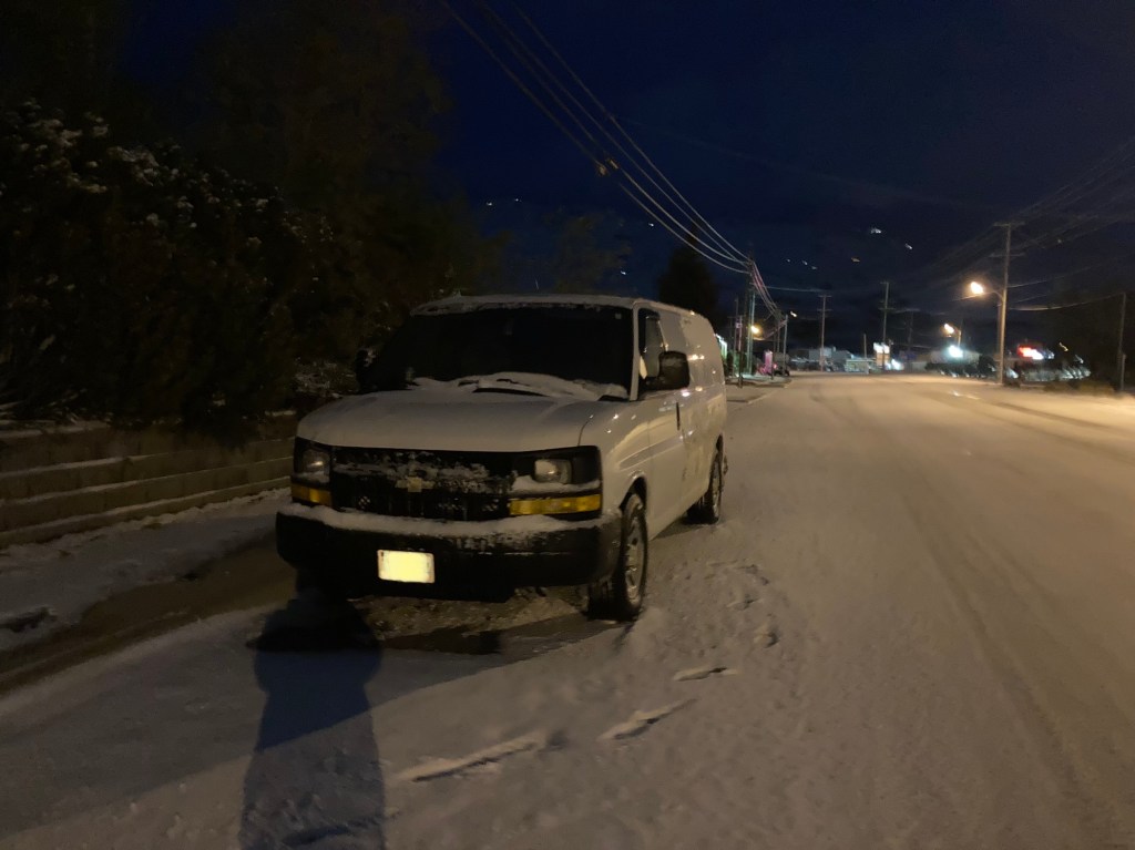 The overnight following Kelowna brought a decent accumulation of snow. I’d stayed at a Walmart and in the morning I was clearing off the windshield and van roof. The snow was still coming down and it was early enough that the city hadn’t been able to do much snow removal or safety precautions on the roads (plowing, salt/dirt).