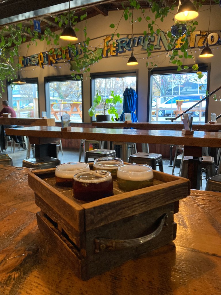 I considered visiting Moody Ales, but it seemed loud and crowded at the time, so I opted for Fraser Fermentation – a little further off the beaten path, and ending up being a more chill vibe (other than me almost getting hit by a car on the walk there). They had a bunch of unique experimental brews on their menu, which I tend to appreciate.