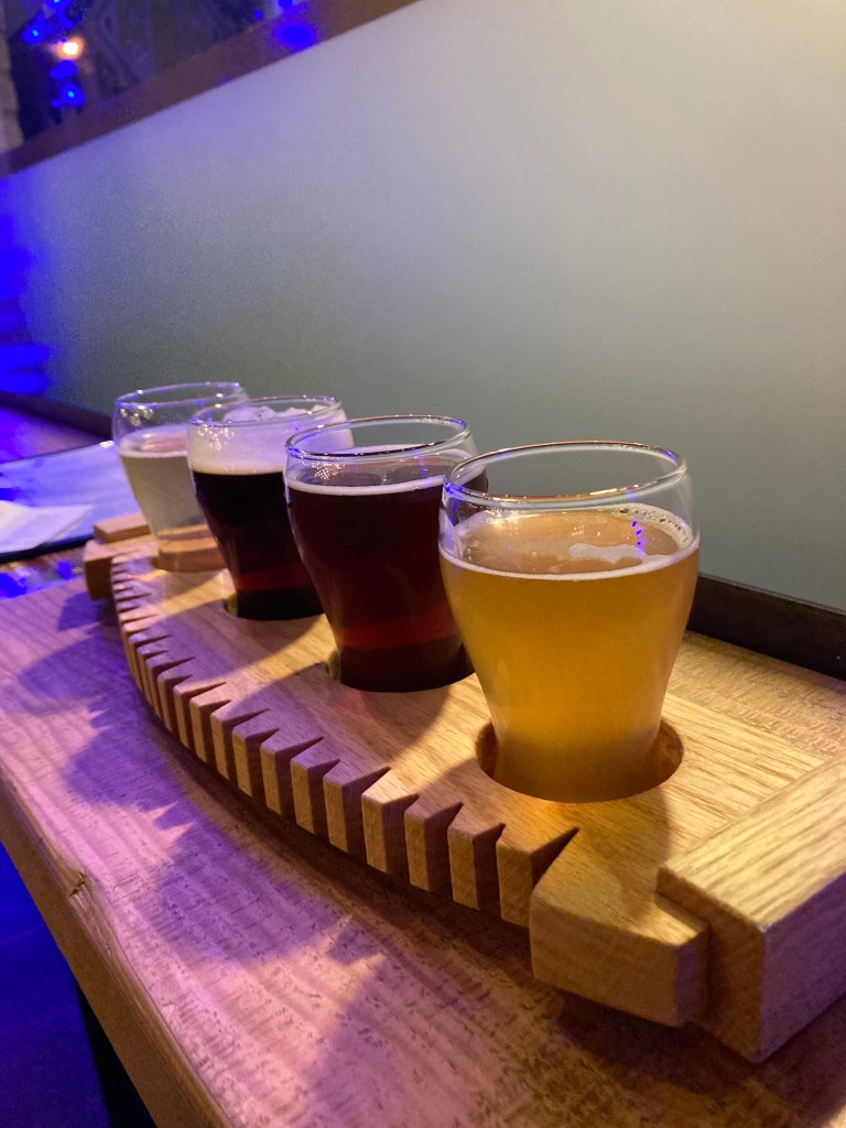 It was October when I visited and they had their seasonals on tap – which I’m always a sucker for. So my flight consisted of their Project 9 Pilsner, What The Huck Huckleberry Ale, Ghostrider Pumpkin Brown Ale, and Java The Hut Coffee Milk Stout.