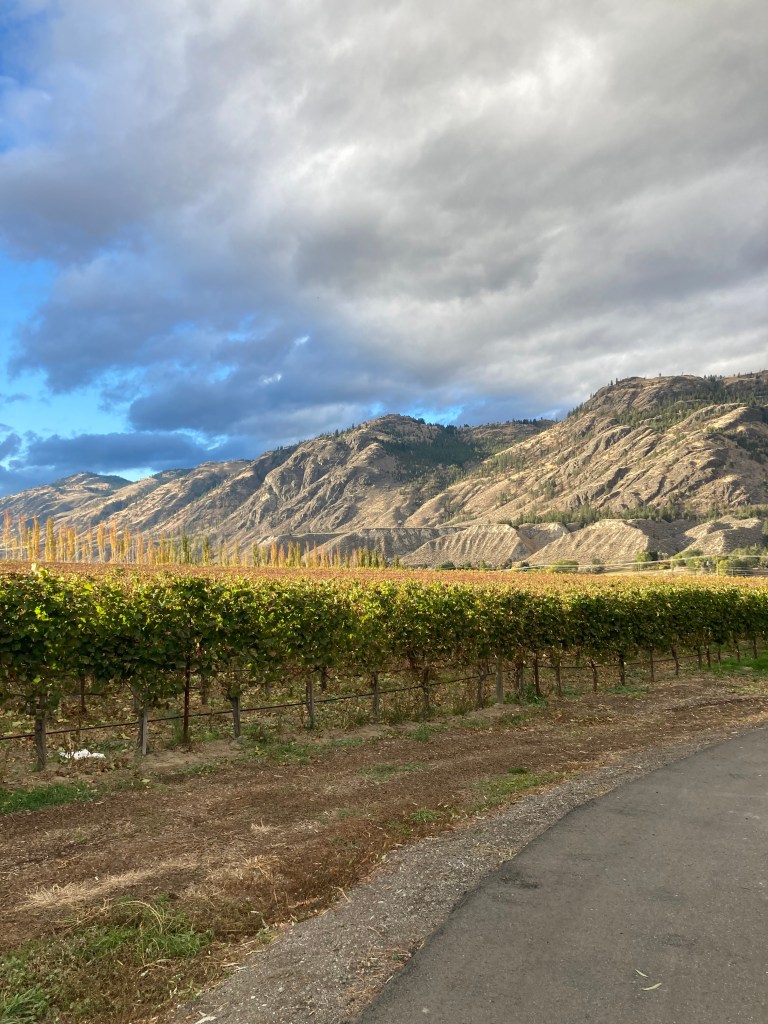 In my short time in Osoyoos I chose to visit Nk’Mip Cellars Winery. Nk’Mip is the first indigenous owned winery in North America, located in the hottest and driest area of Canada. And it was so so lovely! My sommelier was kind, informative, and generous. He gave me an extra sample – and it was so good and so up my alley that I had to take a bottle with me! I thought I wouldn’t like a dry wine, but it was super refreshing, and would be lovely chilled on a hot day. It was the 2021 Mer’r’iym White Meritage, considered a white Bordeaux. My host gave me a lot of wine facts, which I appreciated. I don’t think my palette is super distinguished (yet), but I enjoyed learning and sampling.