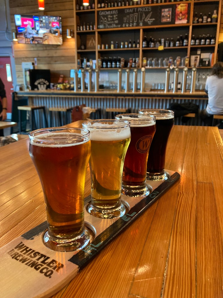 As I trekked further north on the Sea to Sky I made a stop at Whistler Brewing Co. It had been an extra cold day as I hiked the train wreck trail and explored the ski village and Olympic Park. So it was nice to warm by buns and relax with a flight. This was a smaller establishment and felt like a local hangout.