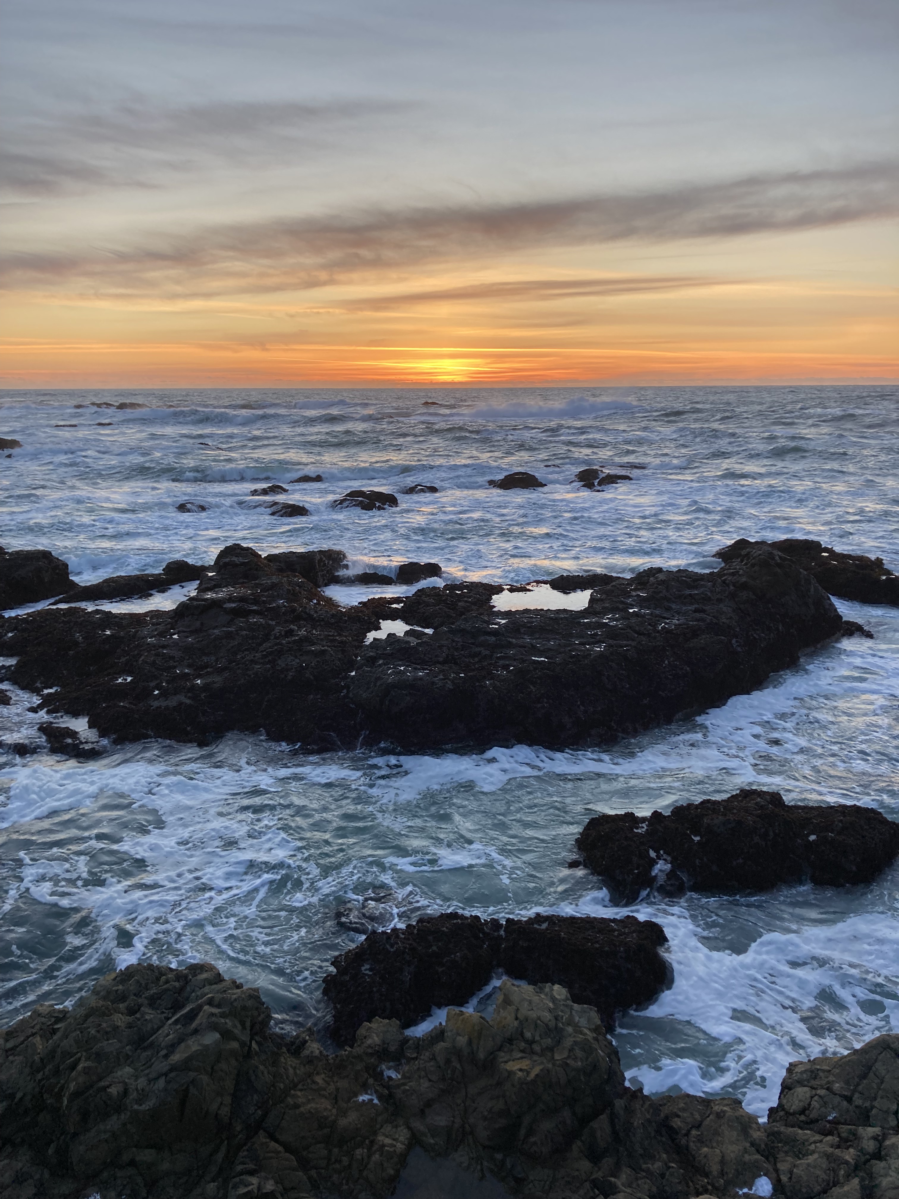 I ended this day by watching the sunset at San Simeon Pier/ William Randolph Hearst Memorial Beach. There was a wooden pier that I walked out on, watching the waves roll in from the unique vantage point of above. Watching waves roll never got old for me. Just like watching the sun set over the Pacific ocean never got old.