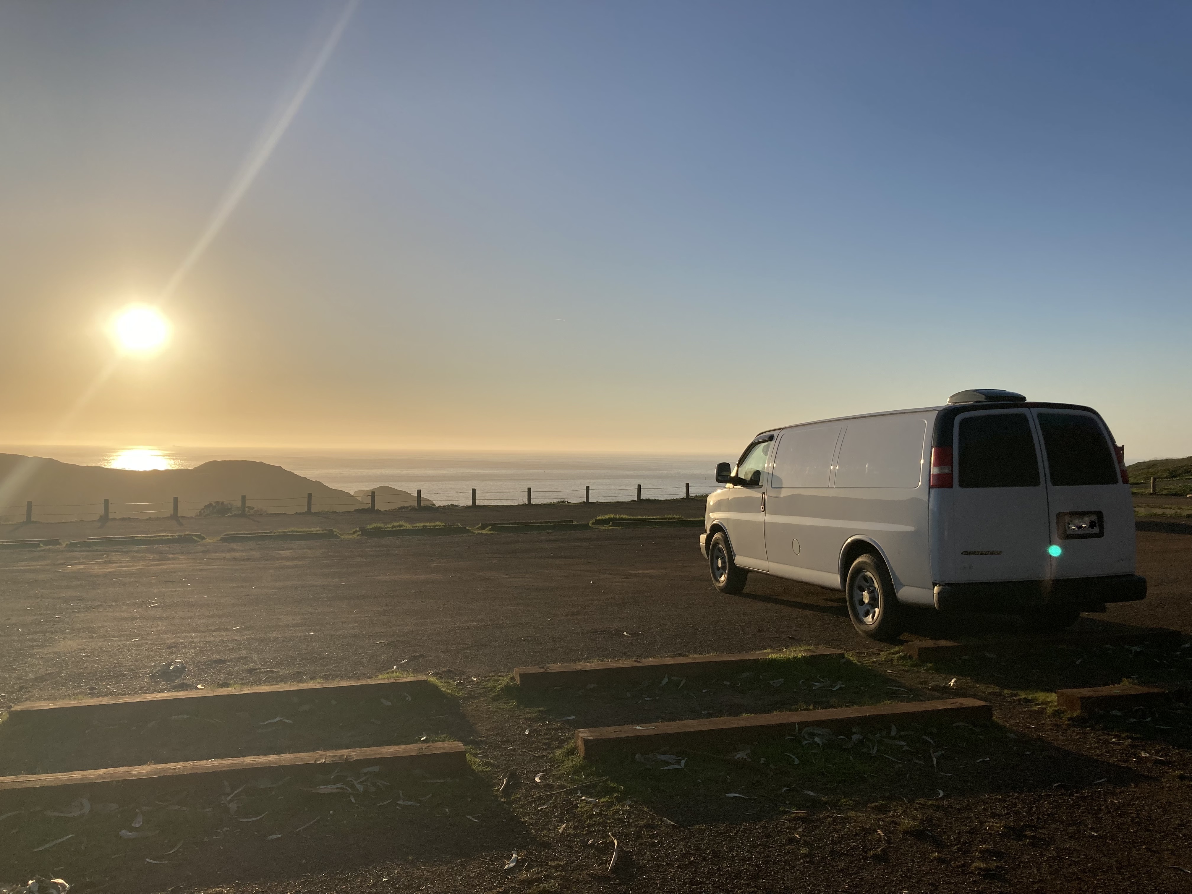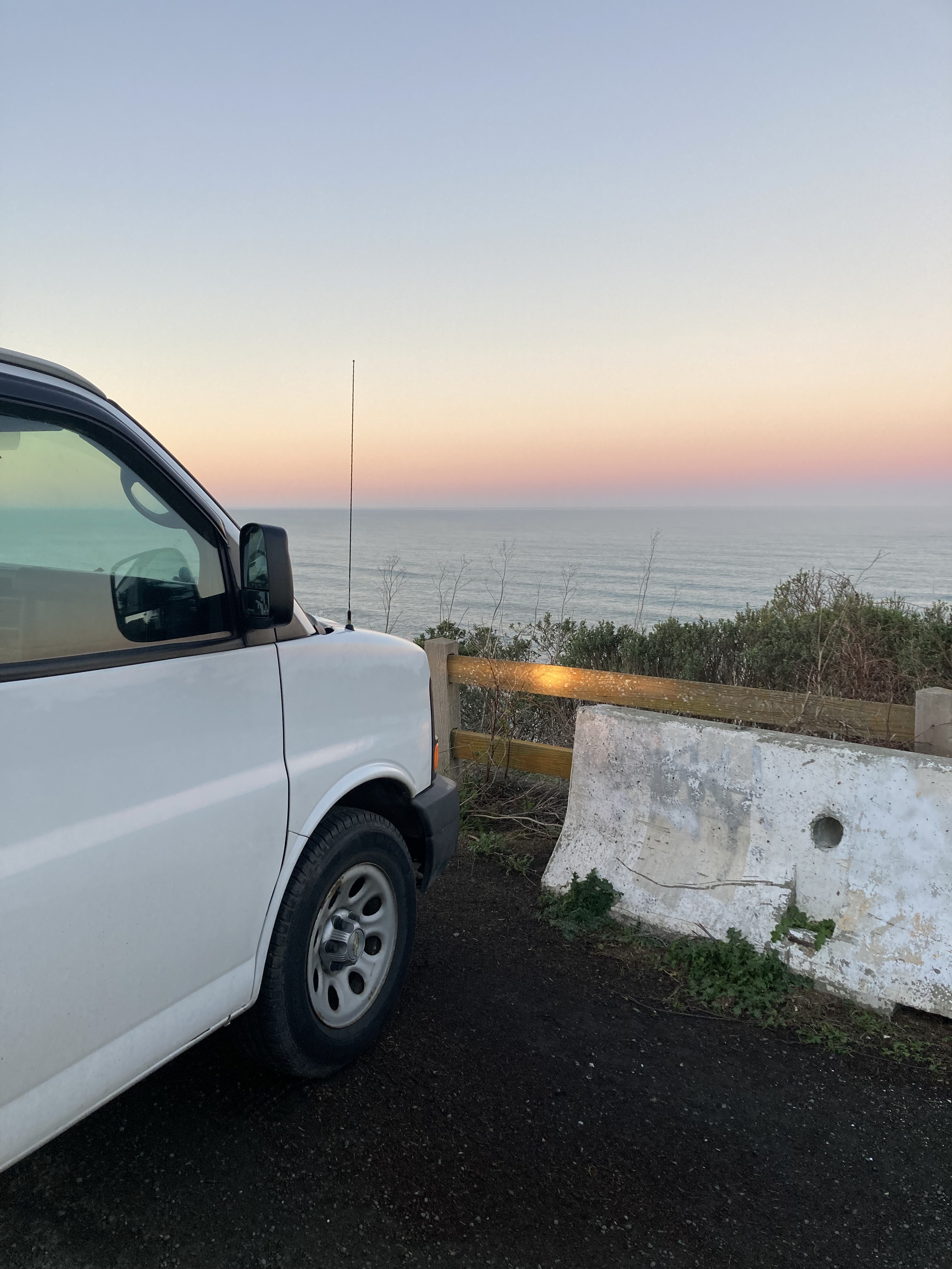 I had another spot where I was able to spend some downtime, do planning, walk along the coast, watch elephant seals, and watch sunsets. Just an unmarked dirt parking lot.
