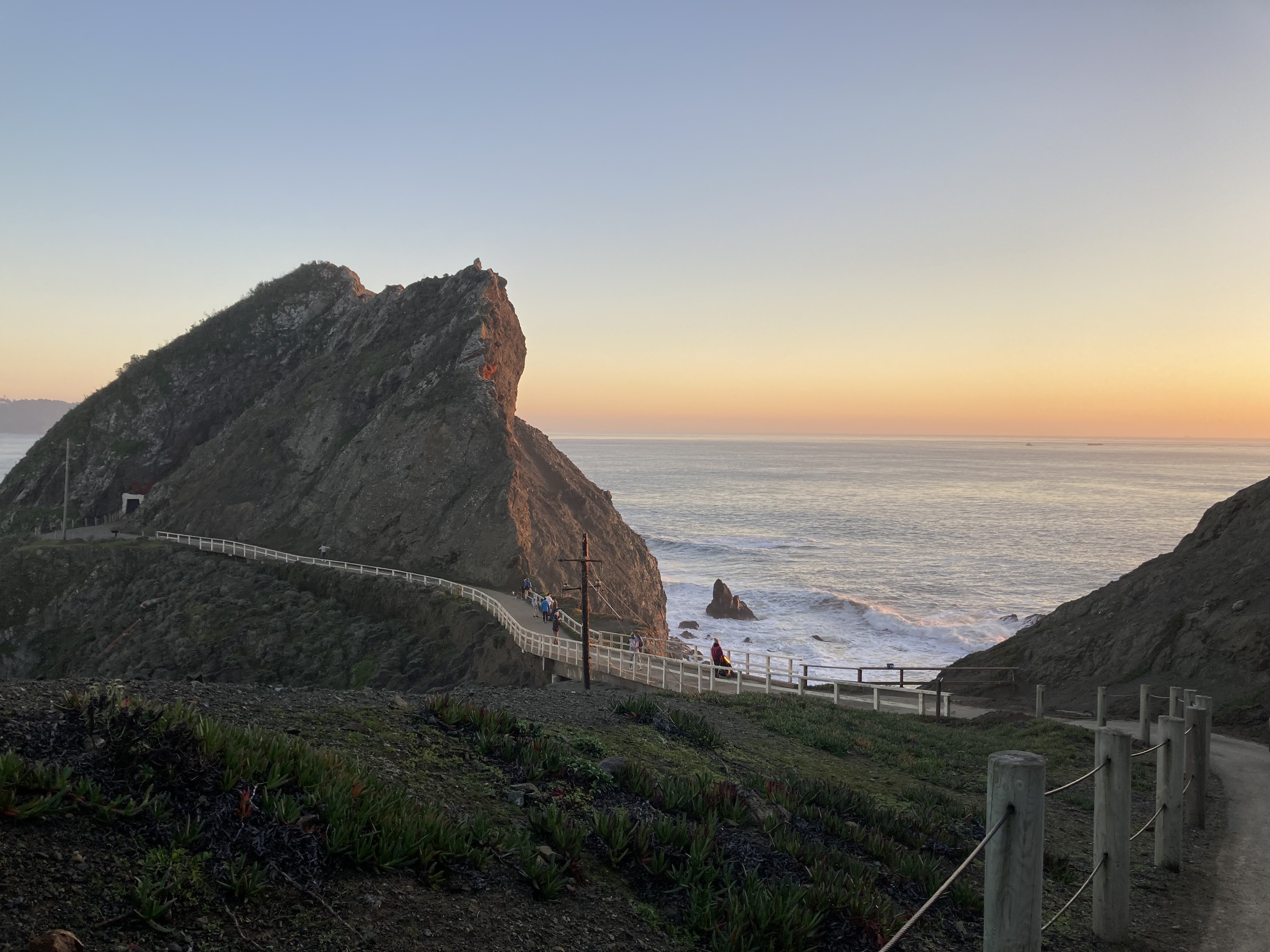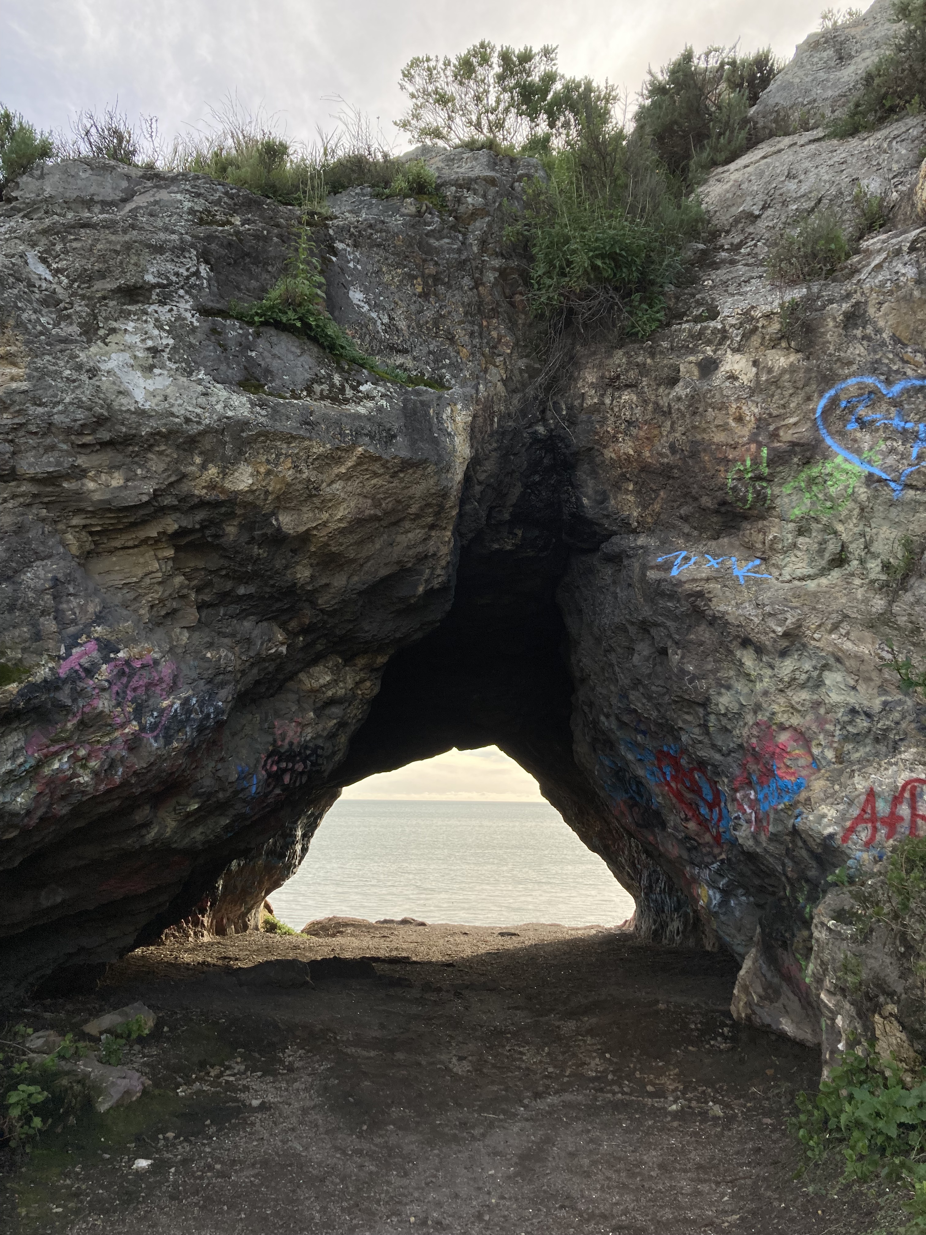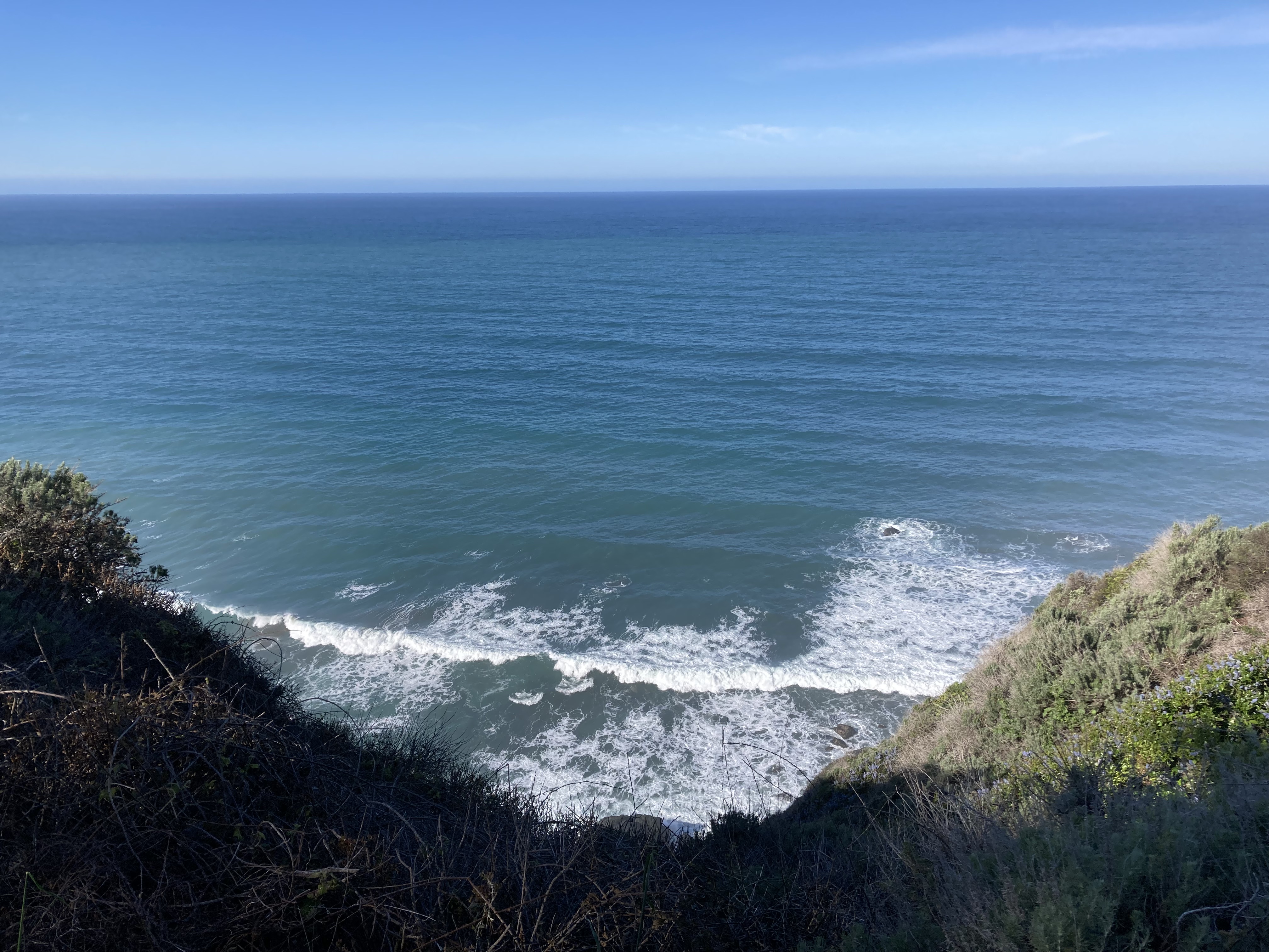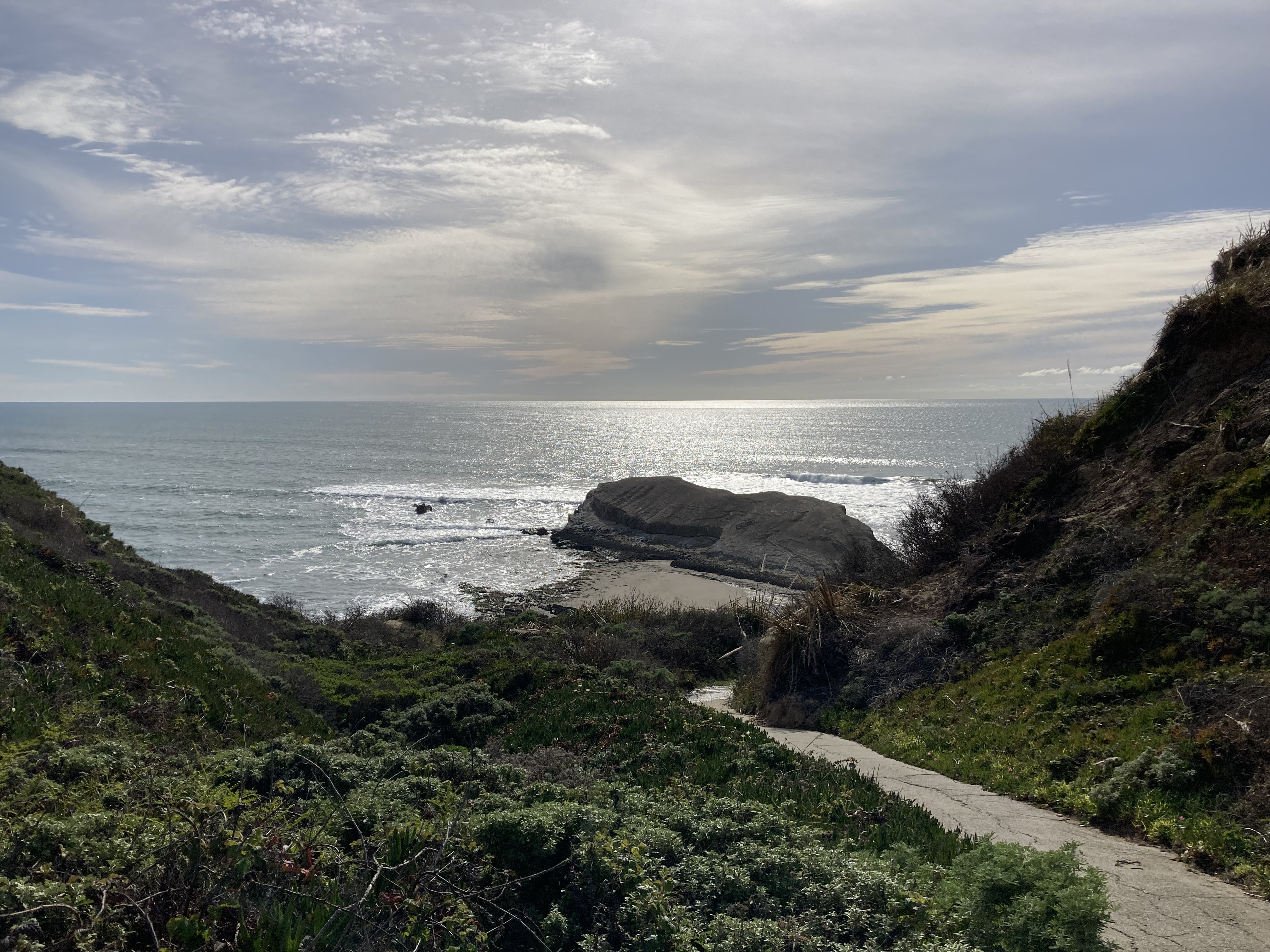 Close to here is Smuggler’s Cave, which has a history of smuggled alcohol during the Prohibition era. The dirt lot seemed to be a hangout spot and was crowded when I arrived. You take a trail down to an ocean overlook, then behind you is a rock arch that you can walk through to get a view of the northern coastline. Little did I know, there was also a hidden, clothing optional beach here, too, at Pirate’s Cove (probably explains the crowd).