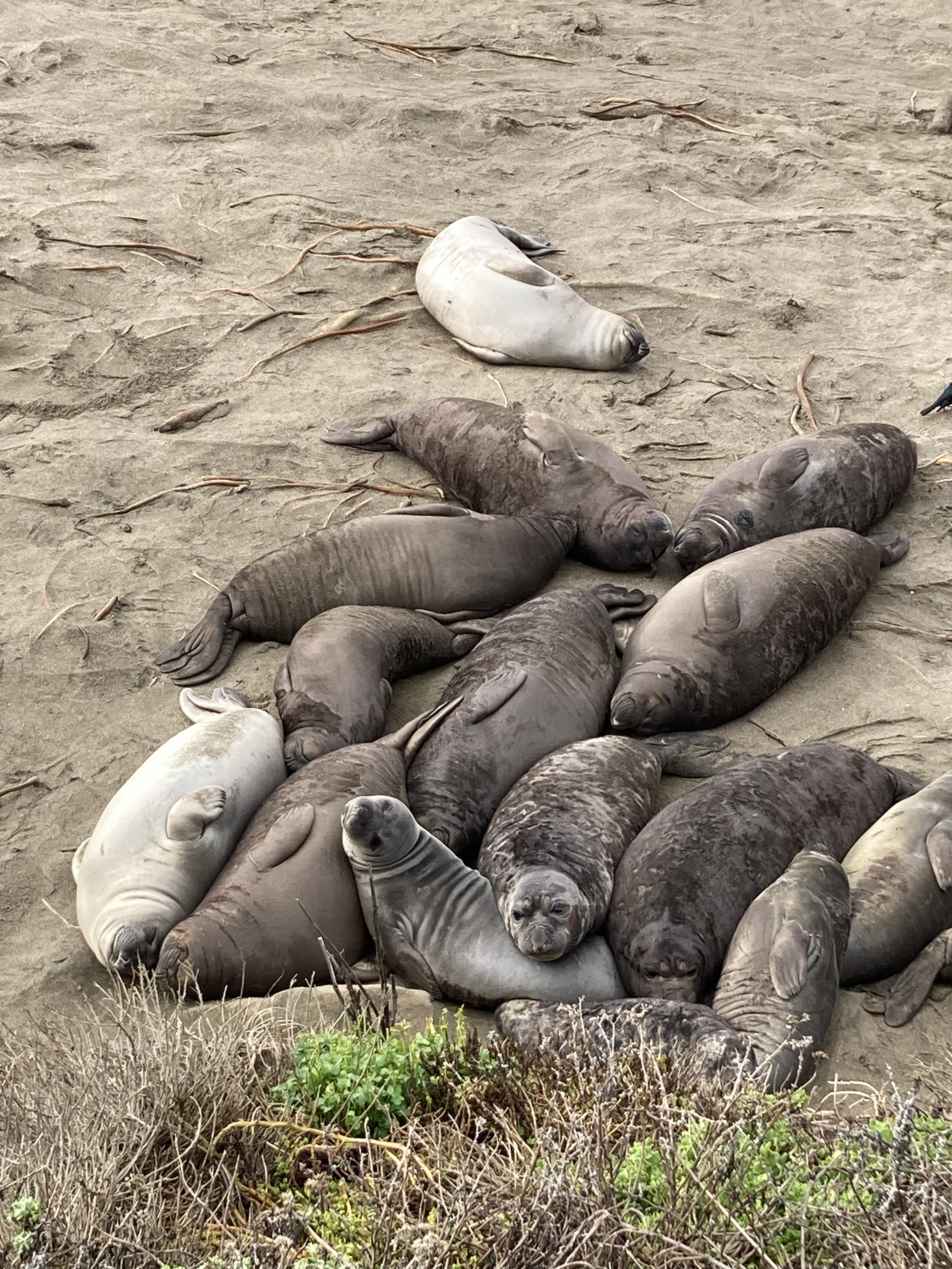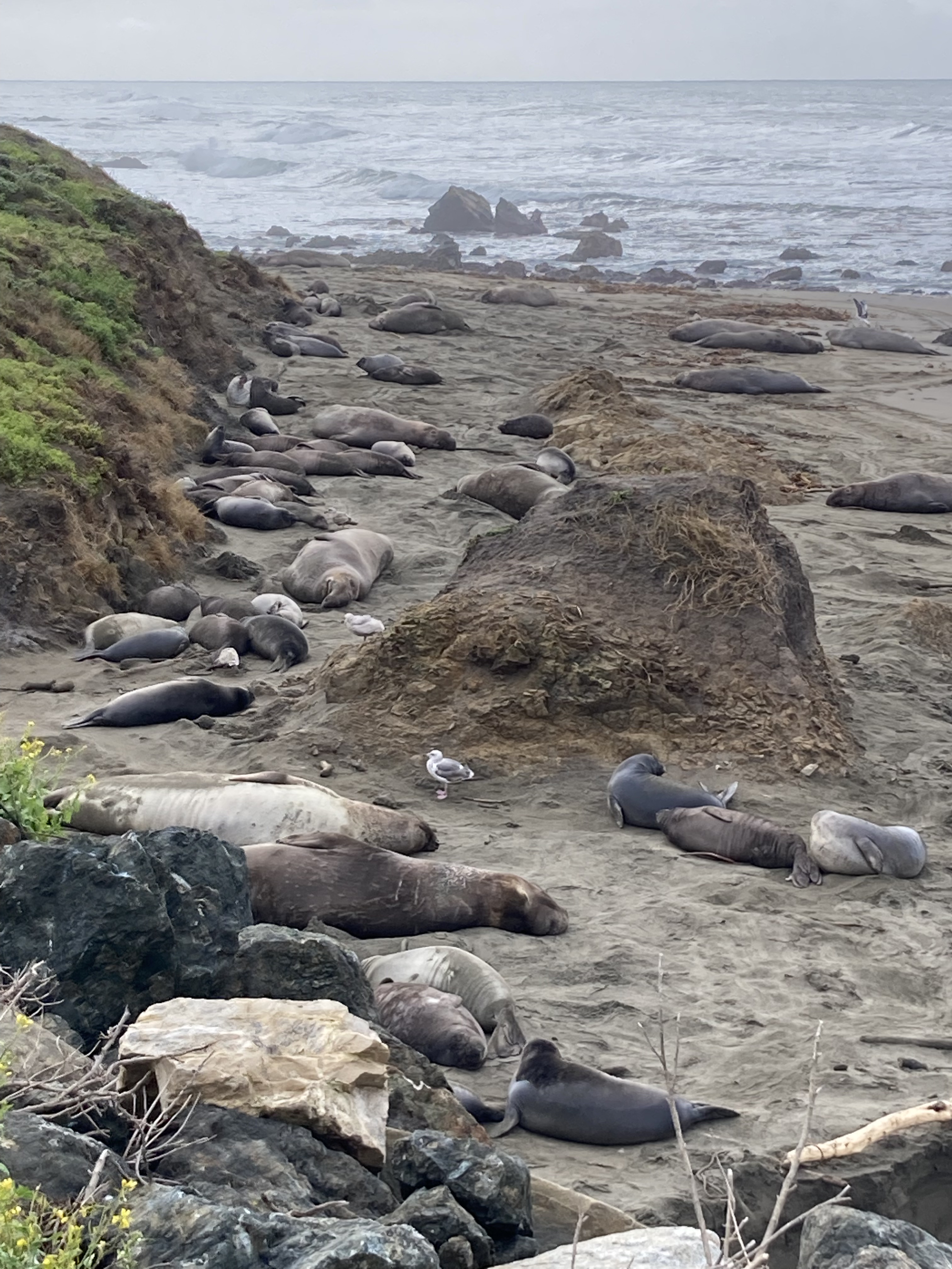 I paid a visit to Elephant Seal Vista Point, which is a stretch of beach where elephant seals come to mate and rest for a few months during the winter. If you’re lucky you might catch males sparring. And there were plenty of pups. You can see this at many stretches of beach along the coast, but they were plentiful here, and there were informational signs as well as volunteers present to answer questions or chat. It’s here that I gained a better understanding of these animals and that they’re not beached and dying, and you don’t want to get too close.