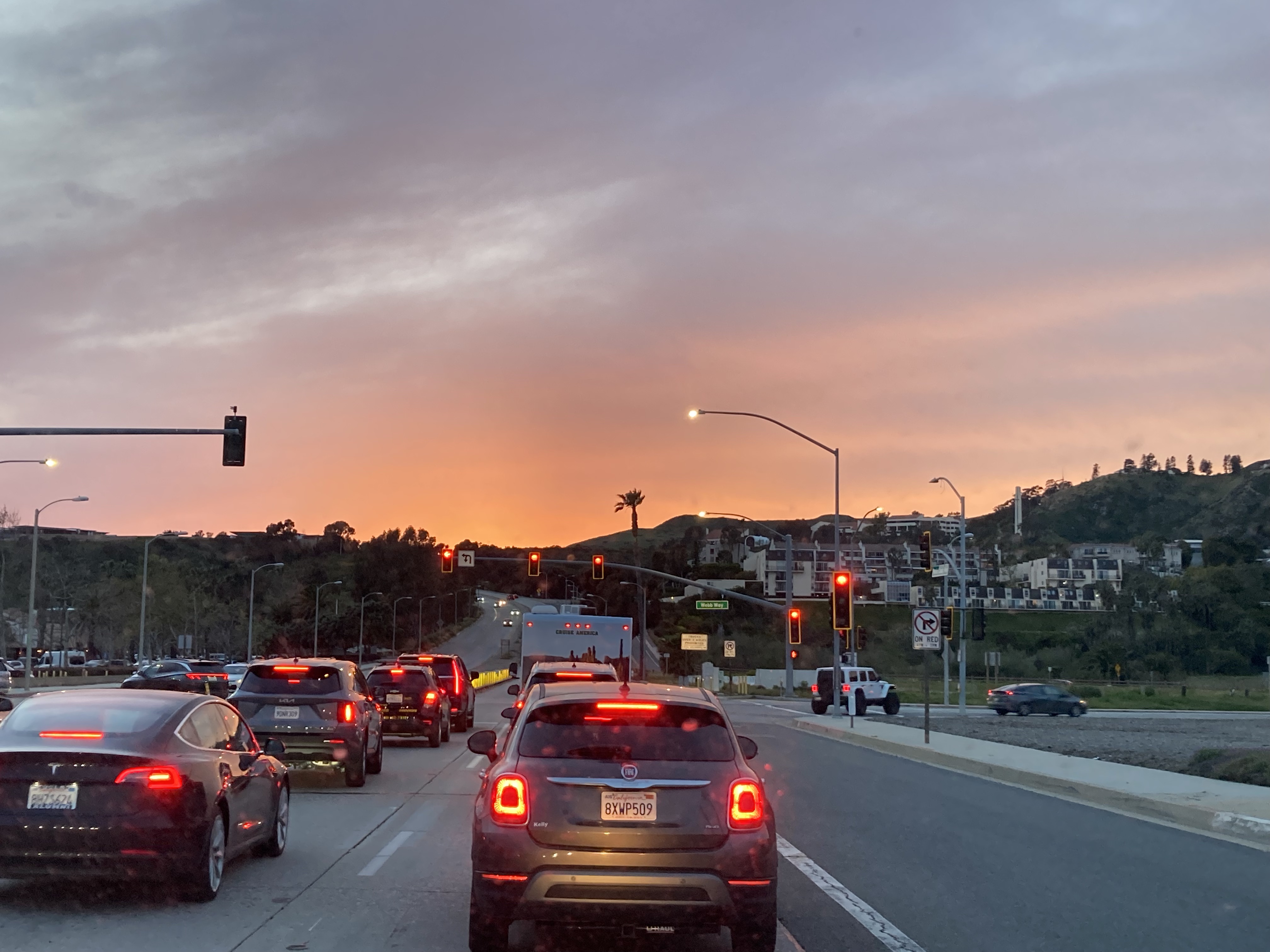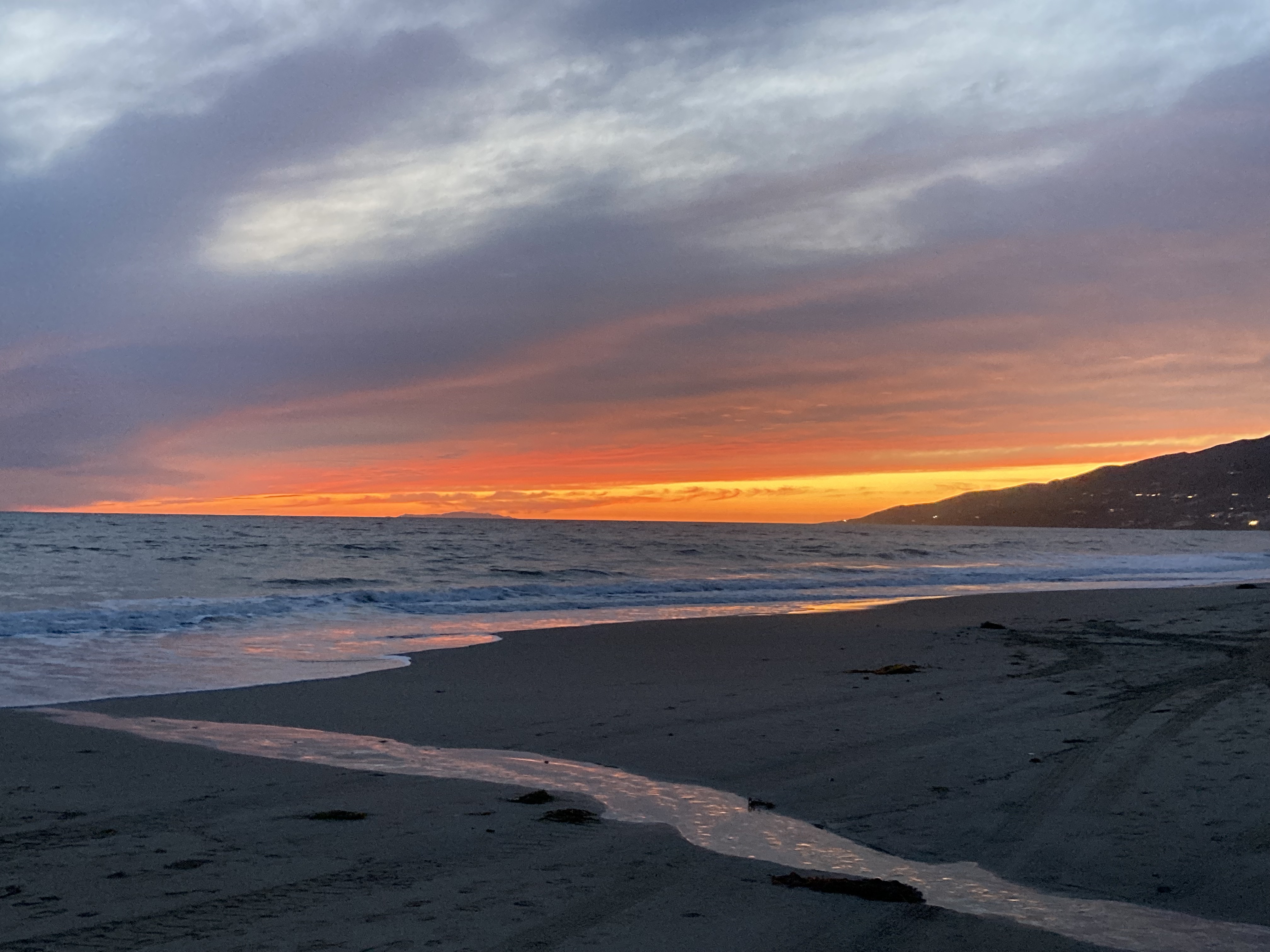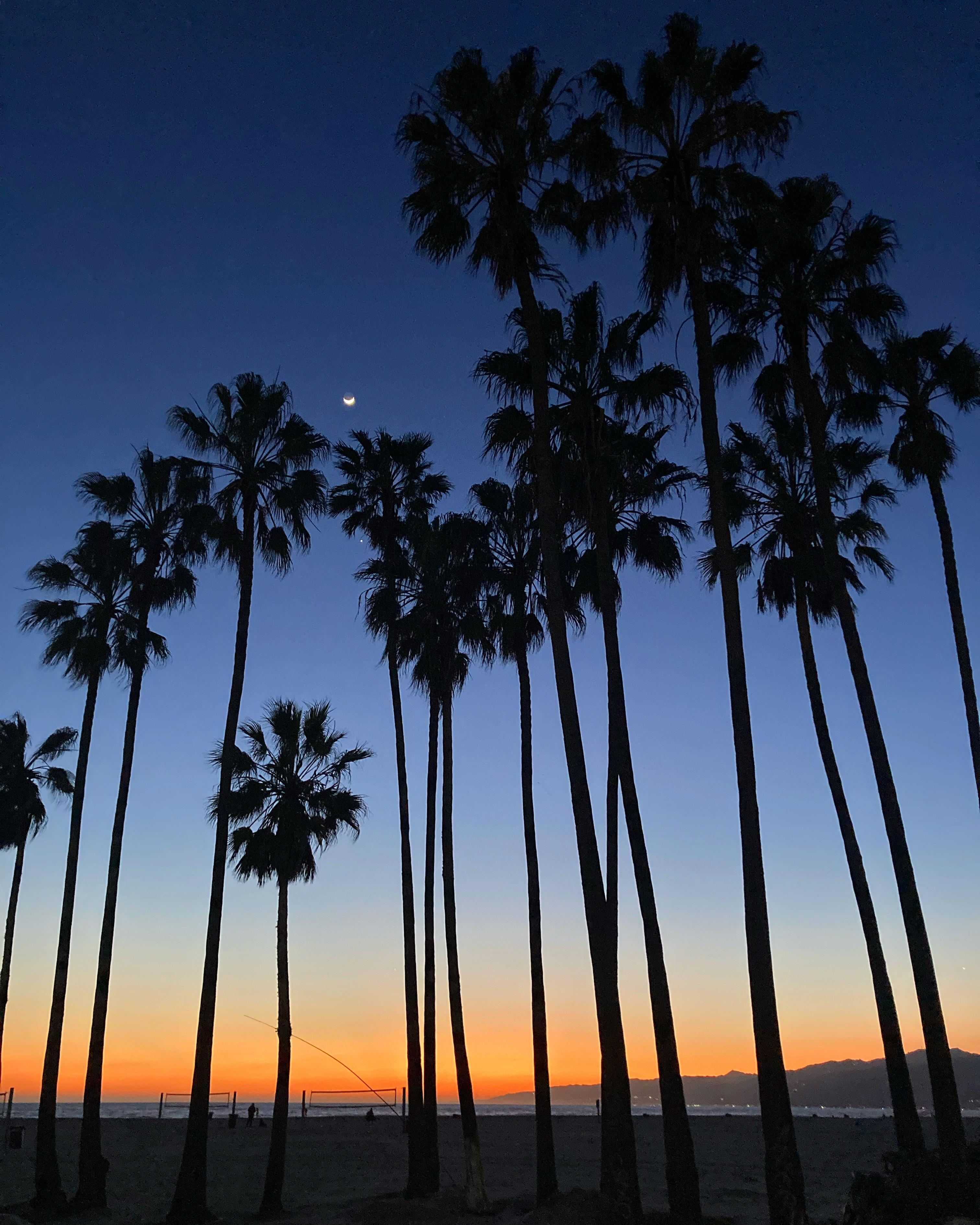 I walked back to the van and as I got to the parking lot I took in a stunning view of palm trees against an indigo sky, the Malibu coastline glowing purple against the fiery horizon.