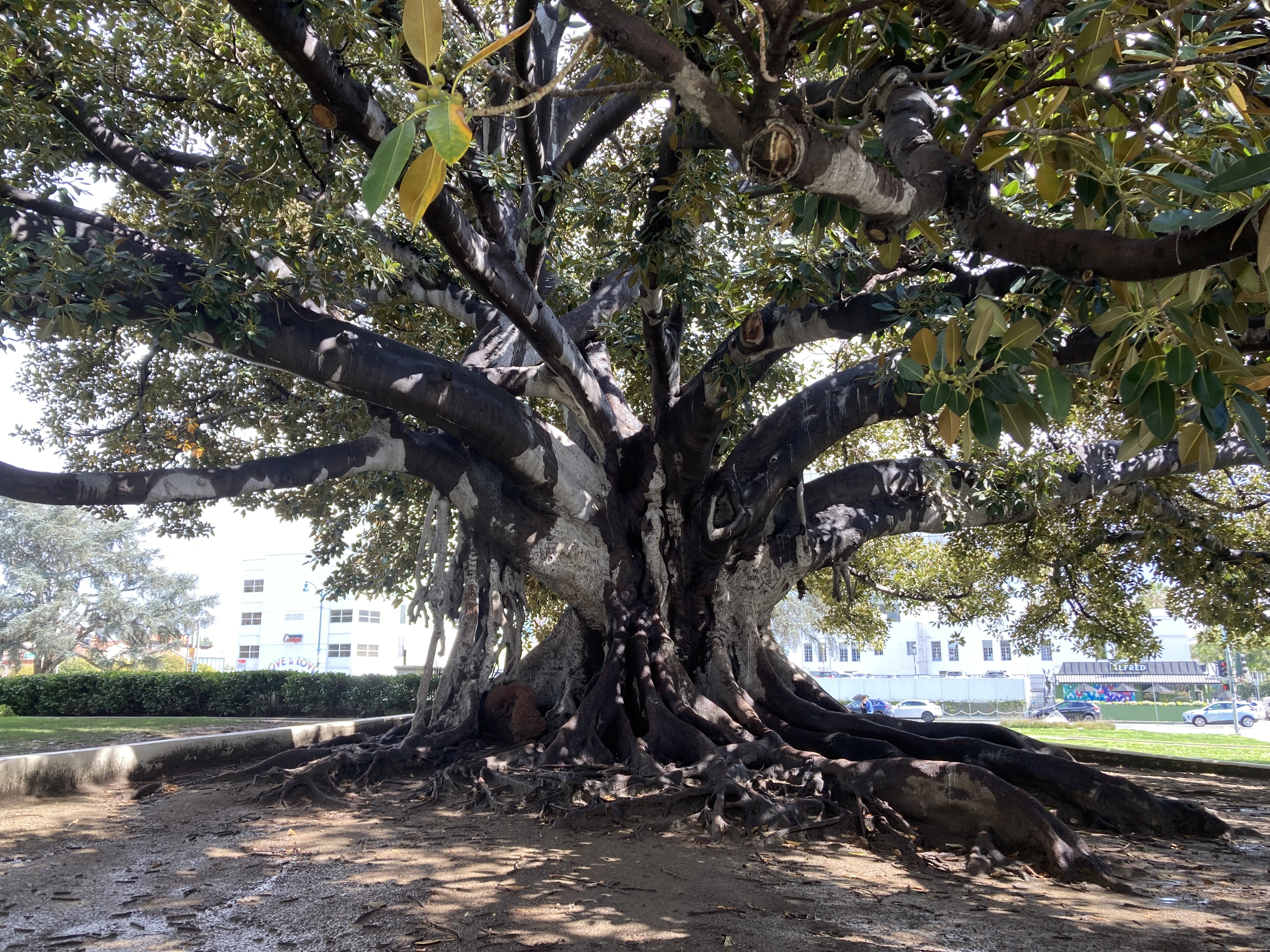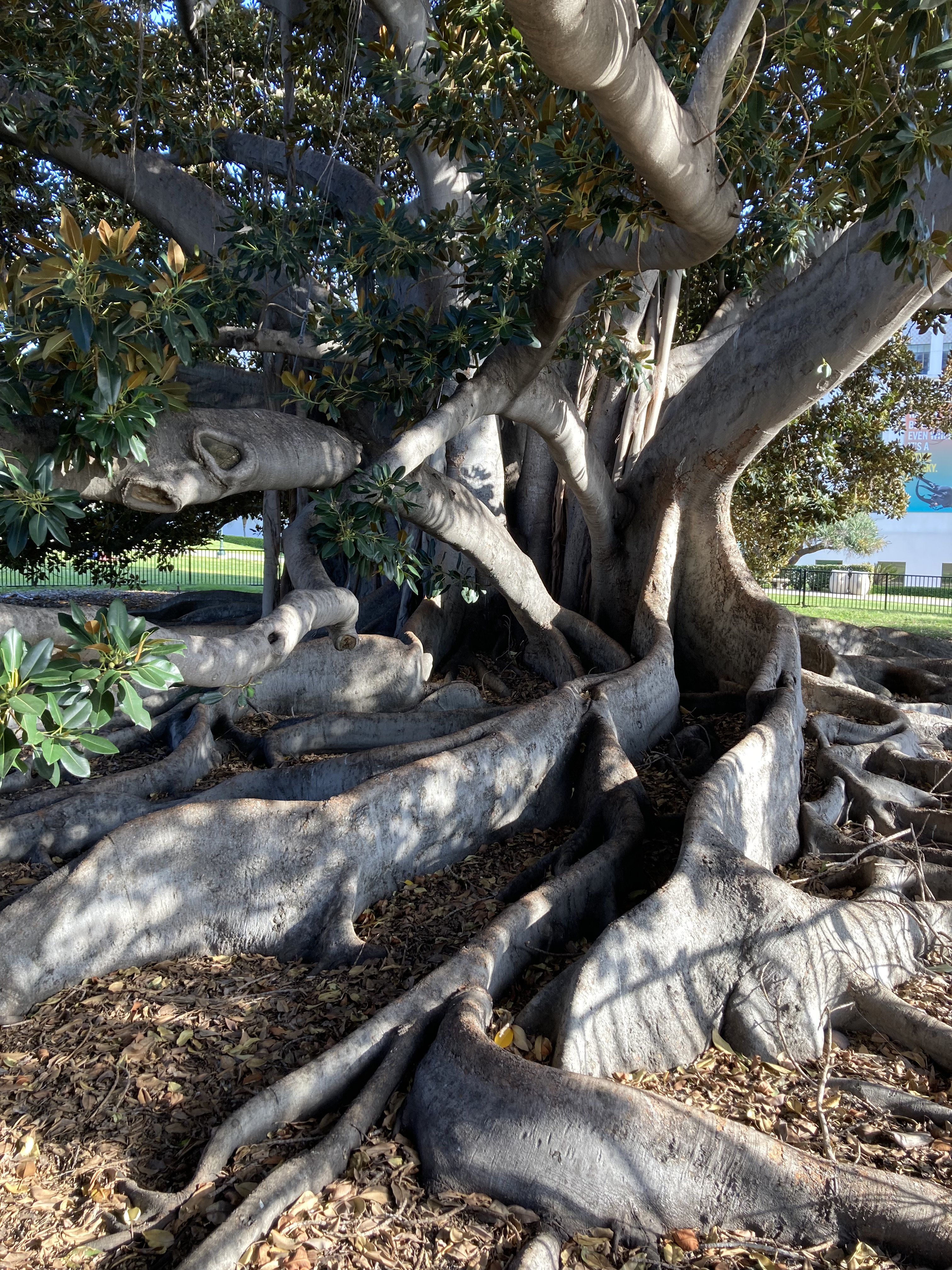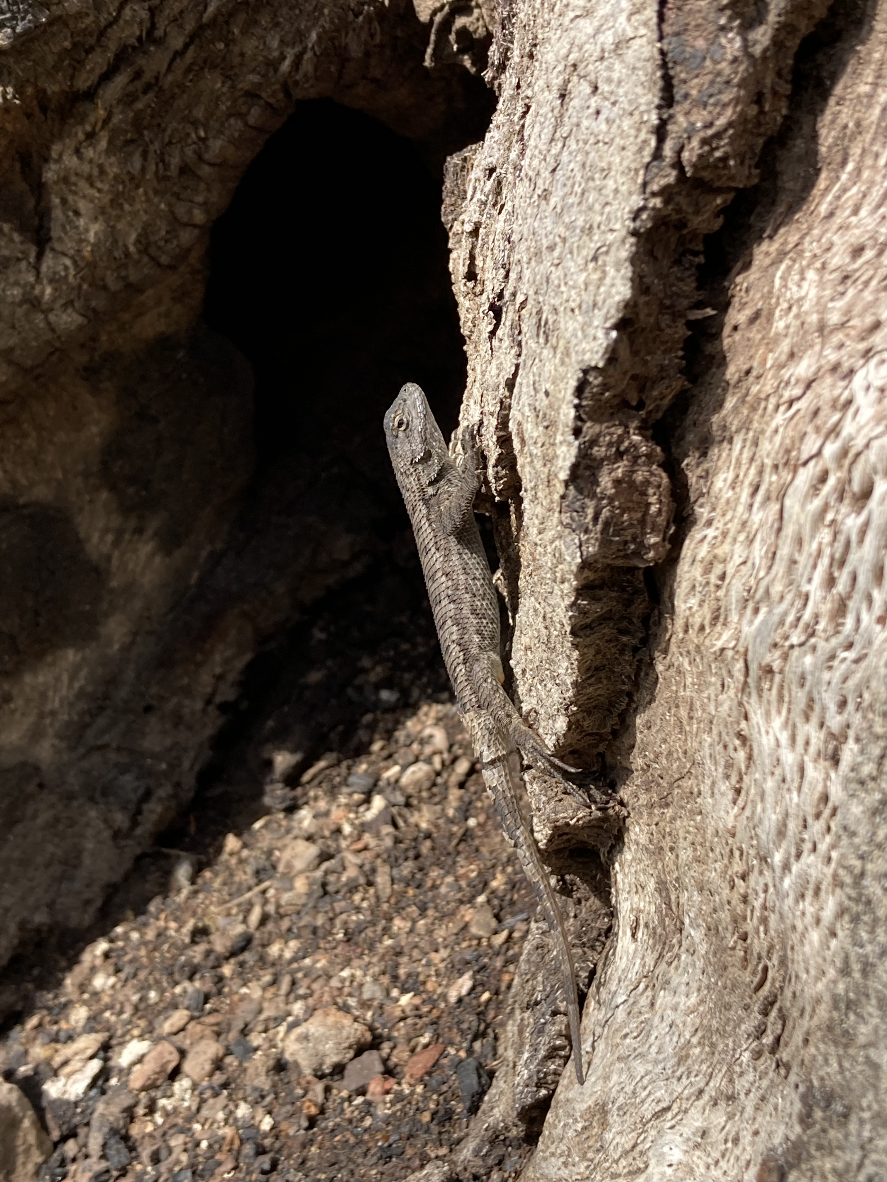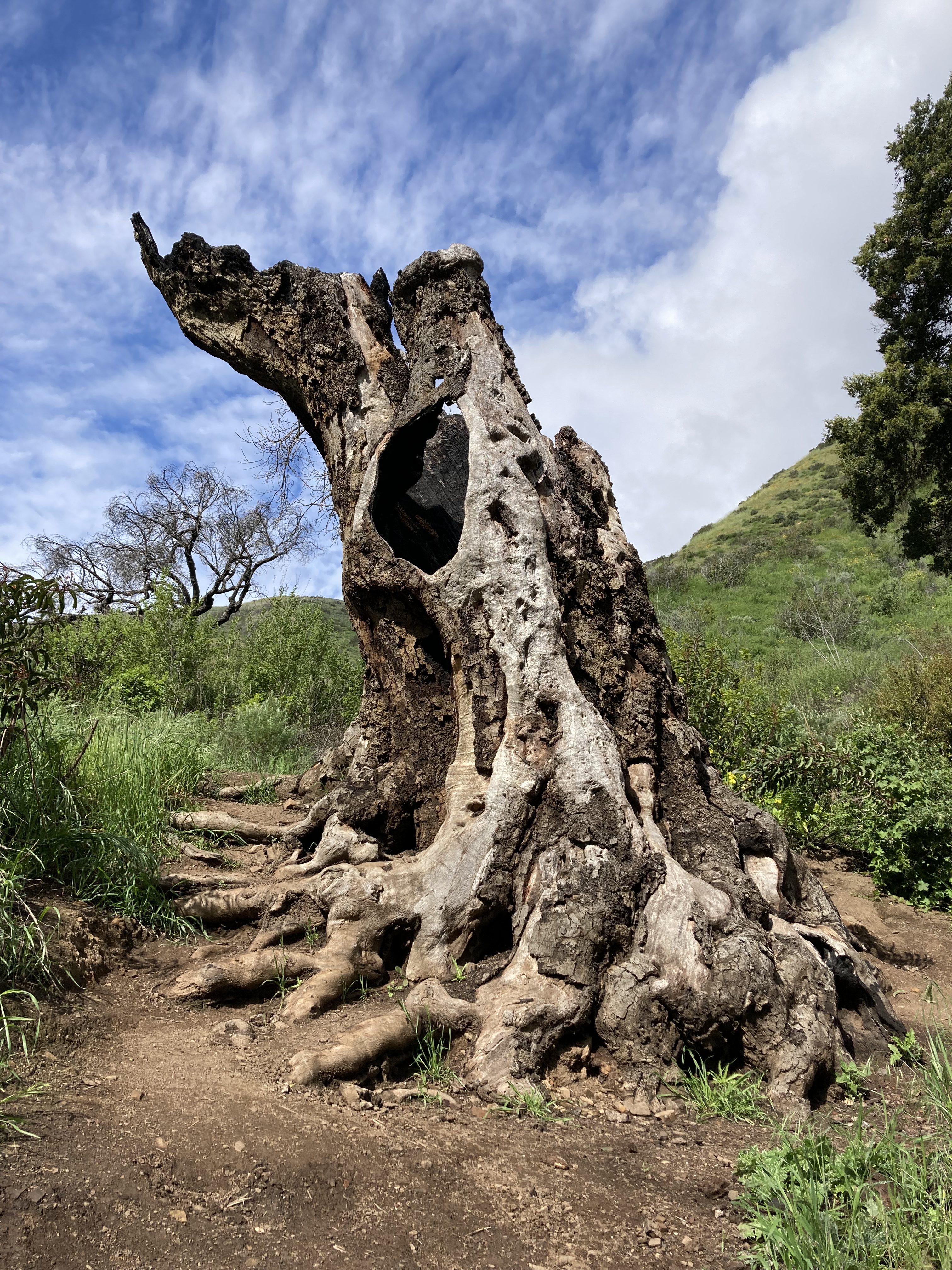 I also did a bit of hiking, tackling Solstice Canyon in Santa Monica Mountains National Recreation Area. The hike was interesting, with old ruins. I thought I saw a mountain lion print – the area does have mountain lions – as well as rattlesnakes. But it was probably just a dog or coyote. The only wildlife of note that I saw was a lizard. I do love seeing lizards in the wild. And a really cool tree!