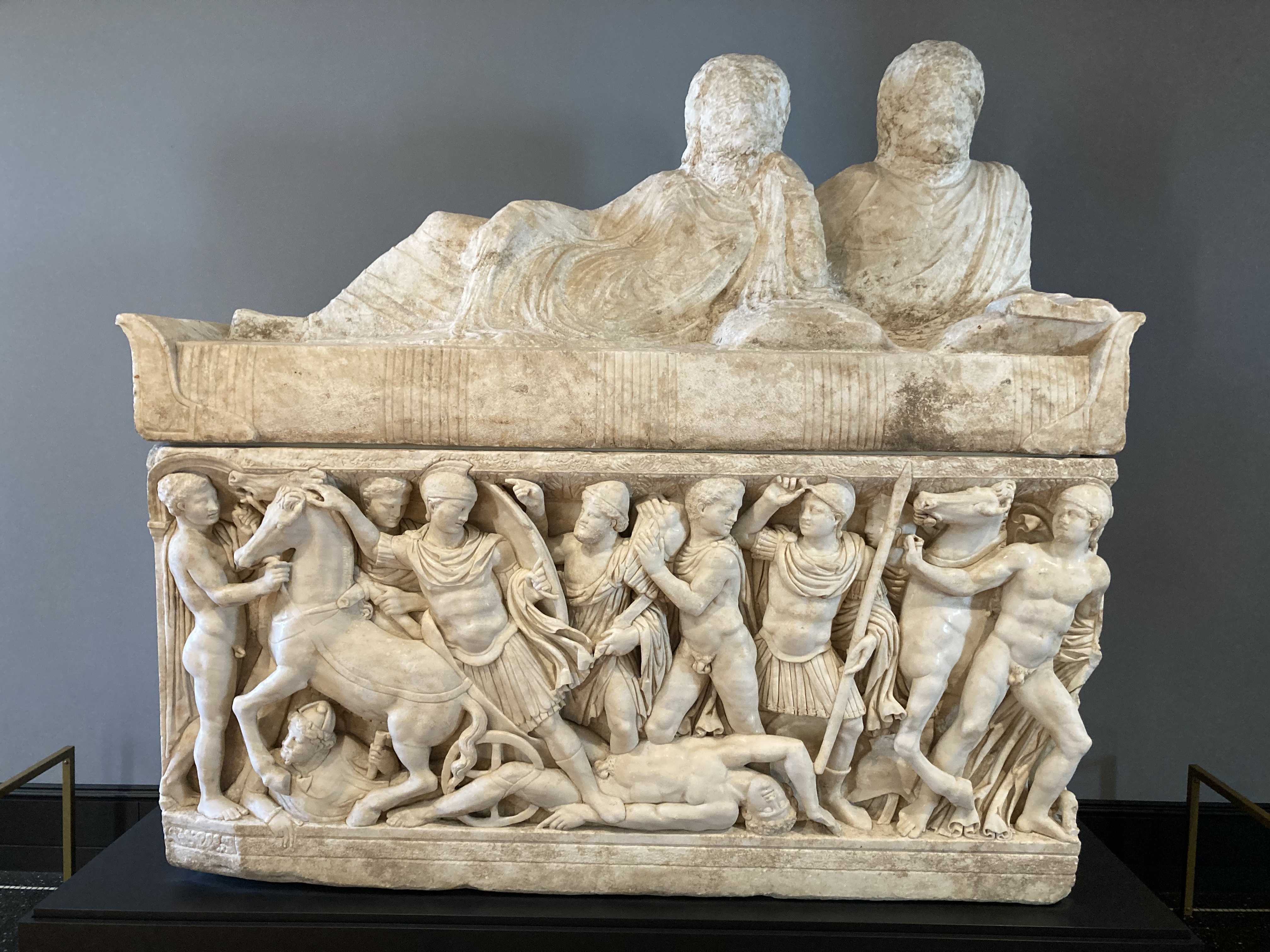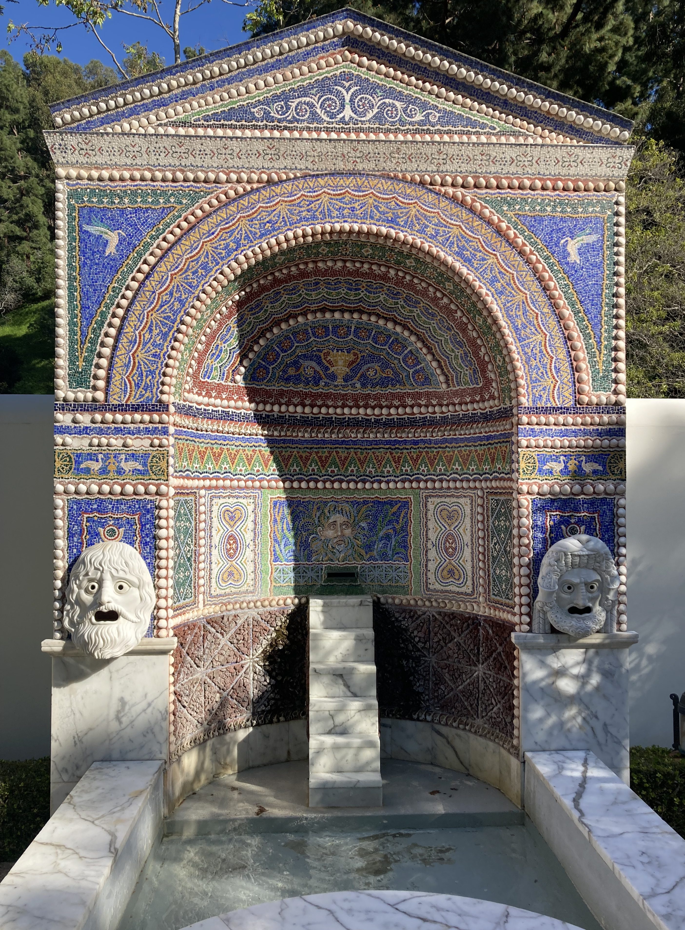 The Getty Villa museum, established by collector J. Paul Getty, is a re-creation of an ancient Roman villa – the Villa dei Papiri, which was buried when Mount Vesuvius erupted in AD 79. It is just east of Malibu, in the Pacific Palisades neighbourhood of Los Angeles. It houses many amazing artifacts, largely Greek and Roman. It is a seaside retreat reminiscent of those owned by wealthy Romans who had multiple homes and escaped the stifling heat of the capital city in the summer, to their luxurious estates along the Mediterranean coast. I highly recommend a visit – it is stunning.