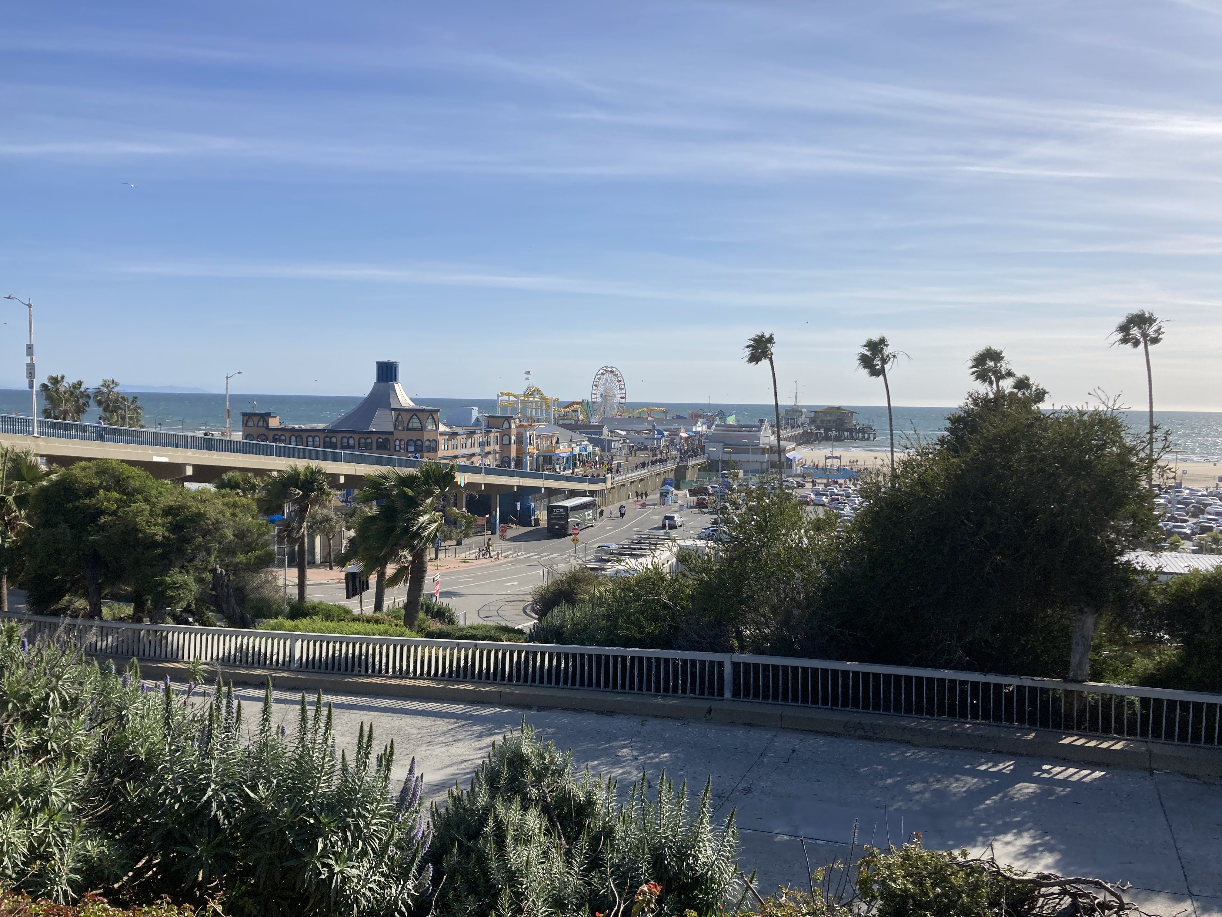 I got to park right under a palm tree. My first day in the area was sunny and beautiful so I headed out for a run. This RV park is located pretty close to the waterfront so I ran through some neighbourhoods, crossed a bridge over the freeway, and then ran along palm-lined East Beach and Cabrillo Bike Path to Stearns Wharf (built in 1872) to check out its shops and view of the city and mountains.