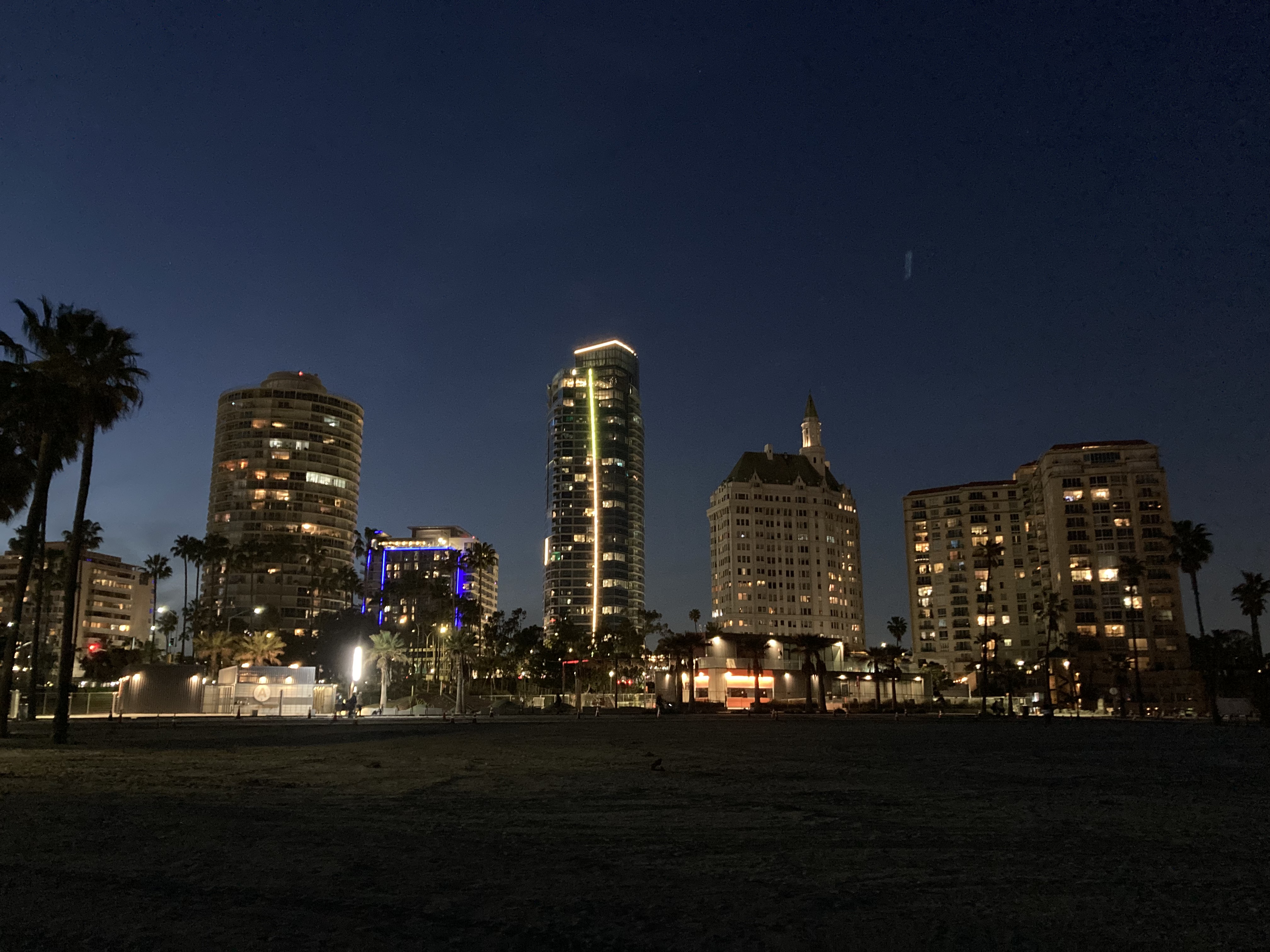 Such a wide and long expanse of beach, the Santa Monica Pier ferris wheel lit up against the night sky to the north.