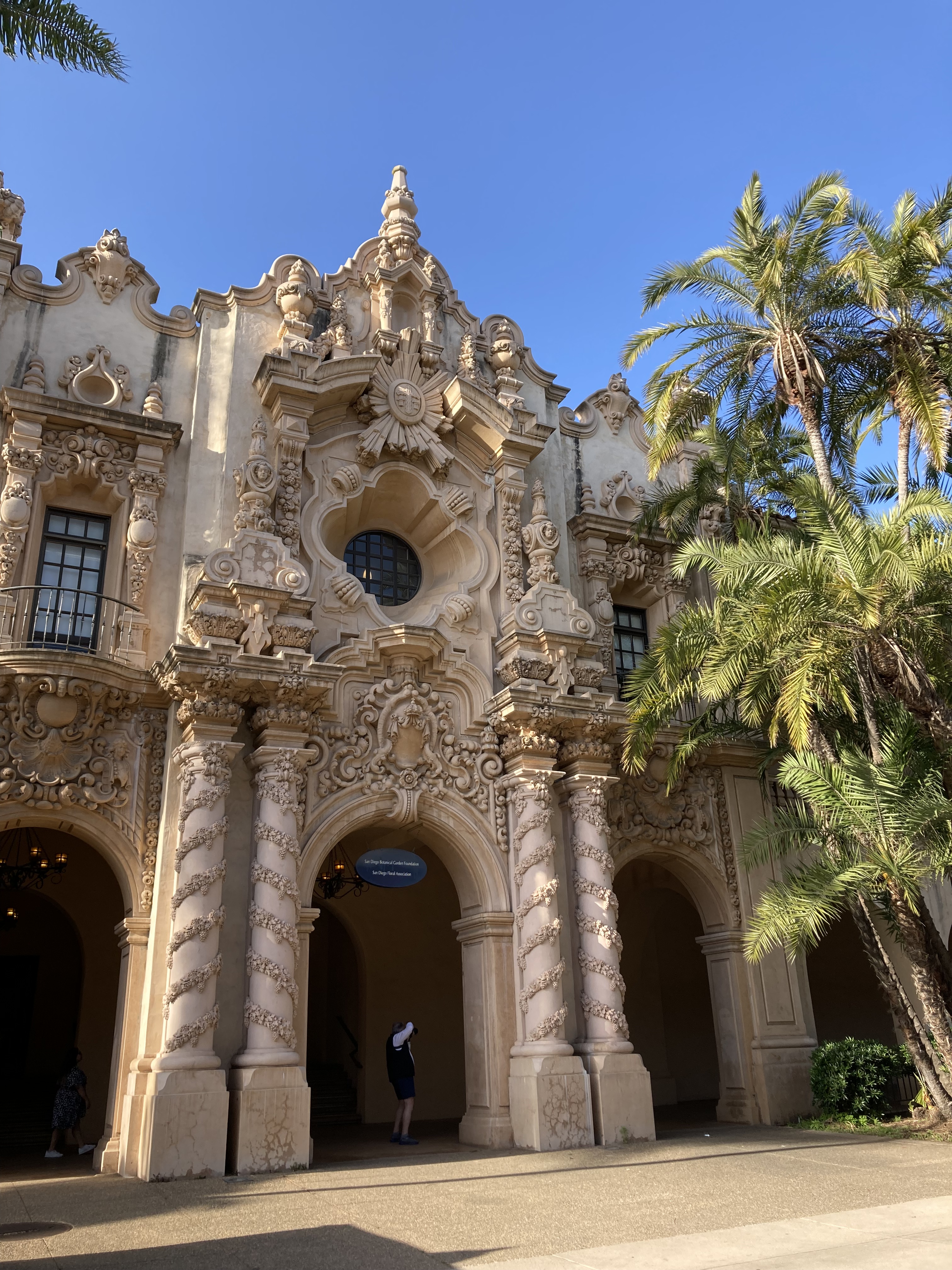 The next day I went to Balboa Park, which was breathtaking in its display of Spanish Colonial Revival architecture. It is also home to the San Diego Zoo, one of the world’s largest and most renowned zoos. It has many museums, among which are the Museum of Us (anthropology), San Diego Museum of Art, Natural History Museum, and Mineral & Gem Society. It has gardens, including a rose garden, cactus garden, and palm tree forest. There are street vendors and performers, restaurants, and it’s a popular place for wedding photos. And then there are various landmarks, like statues, a century old Fig Tree, and buildings with beautiful architecture, like the California Tower (which you can tour and climb to the top of for 360 degree views over San Diego), the California Quadrangle Historic building, Cabrillo Bridge, and the Casa Del Prado Theatre (performing arts). In my books Balboa Park is a must – the architecture is just too stunning and ornate to not bask in its atmosphere (especially on a sunny day!)