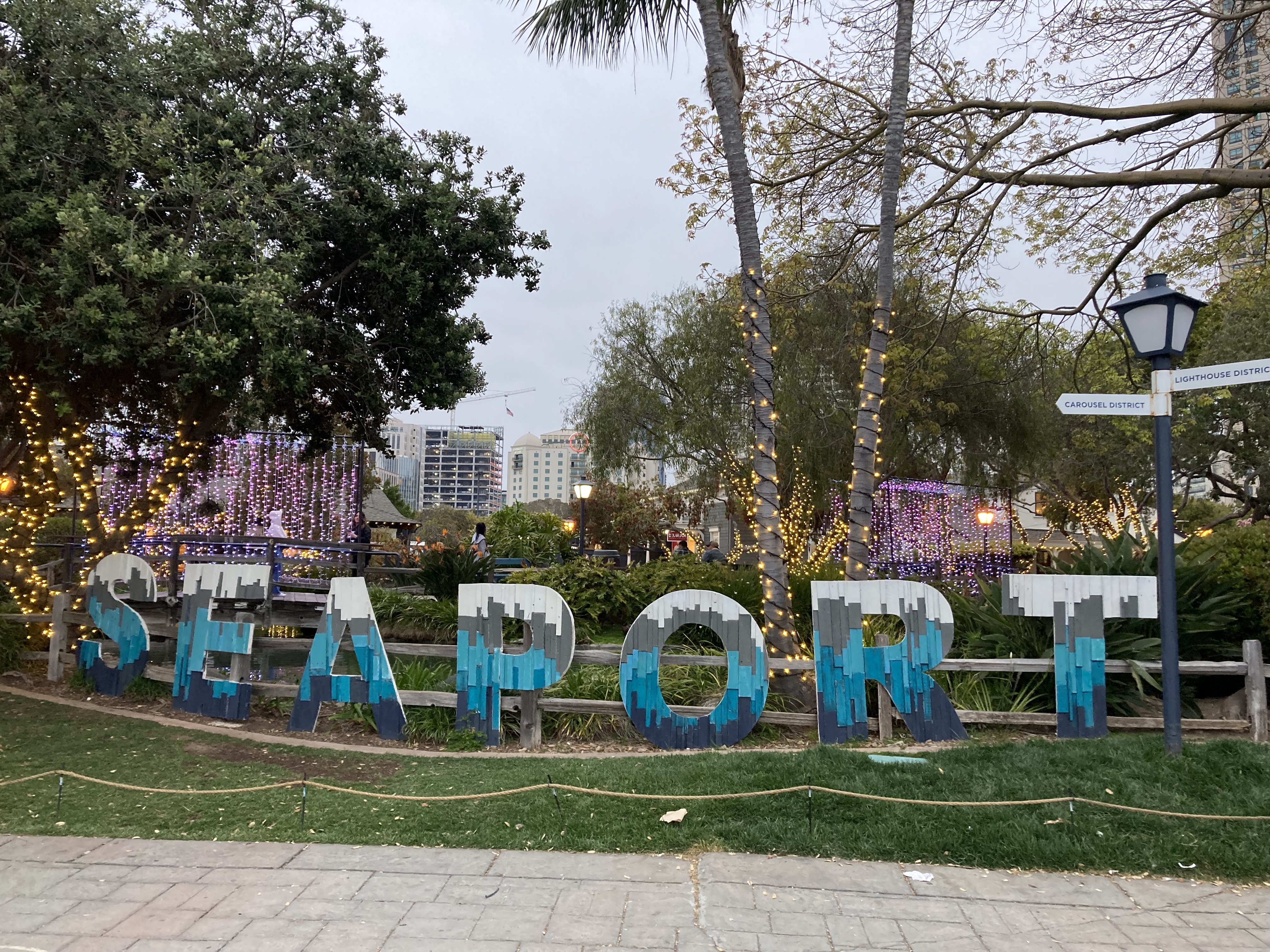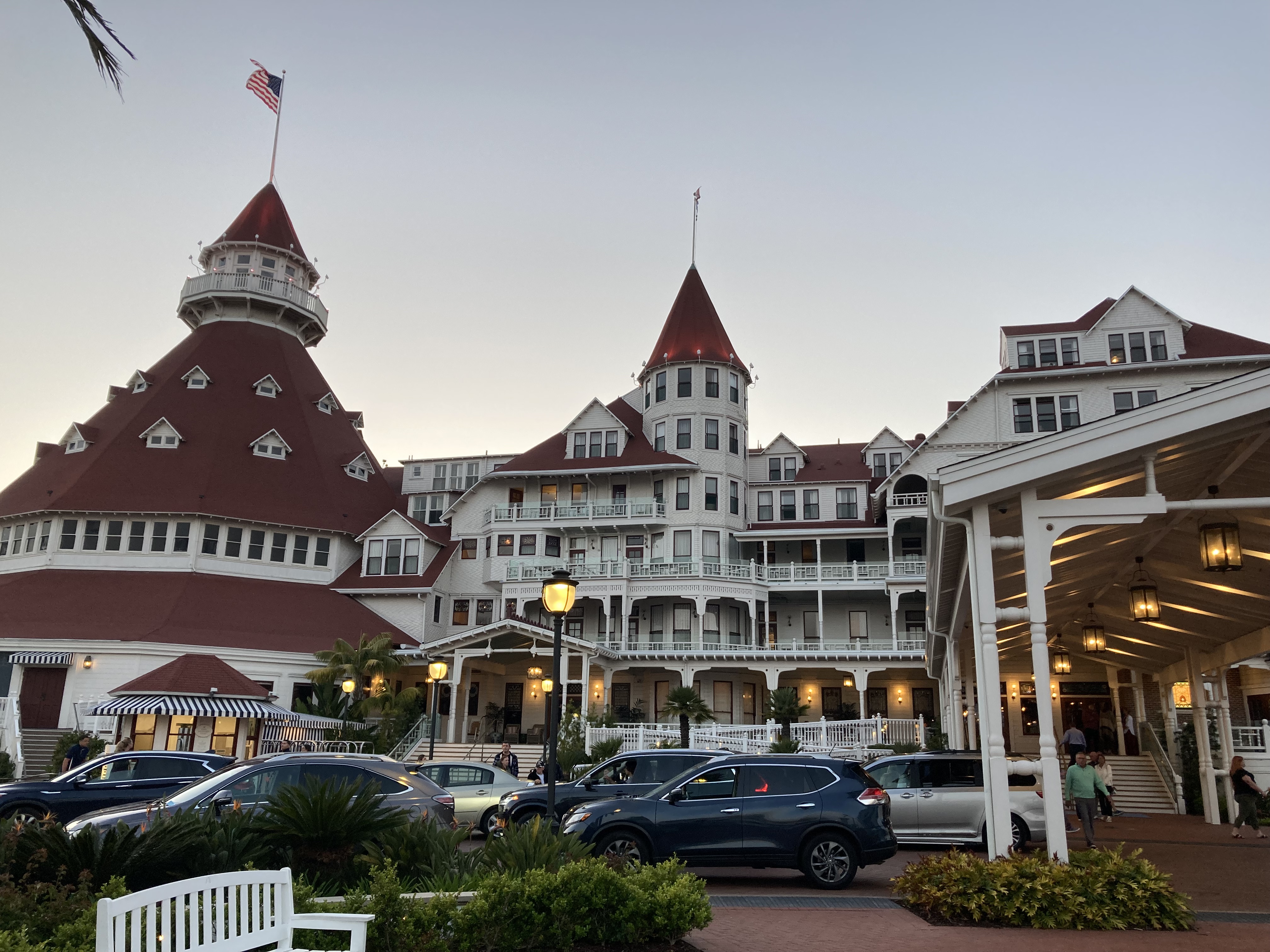 There was parking along Ocean Boulevard (parallel to Coronado Beach) and I walked along the beach toward Hotel del Coronado. The beach was quite beautiful, with its white sand and dunes, as was the hotel, which seemed to be hosting some sort of event and had string lights decorating the palms. I ventured inside the hotel to see the lobby and some of the shops on the lower level. There were photos on the walls showing past visitors, including Marilyn Monroe (the film Some Like It Hot from 1958 was filmed at the hotel) and various presidents.