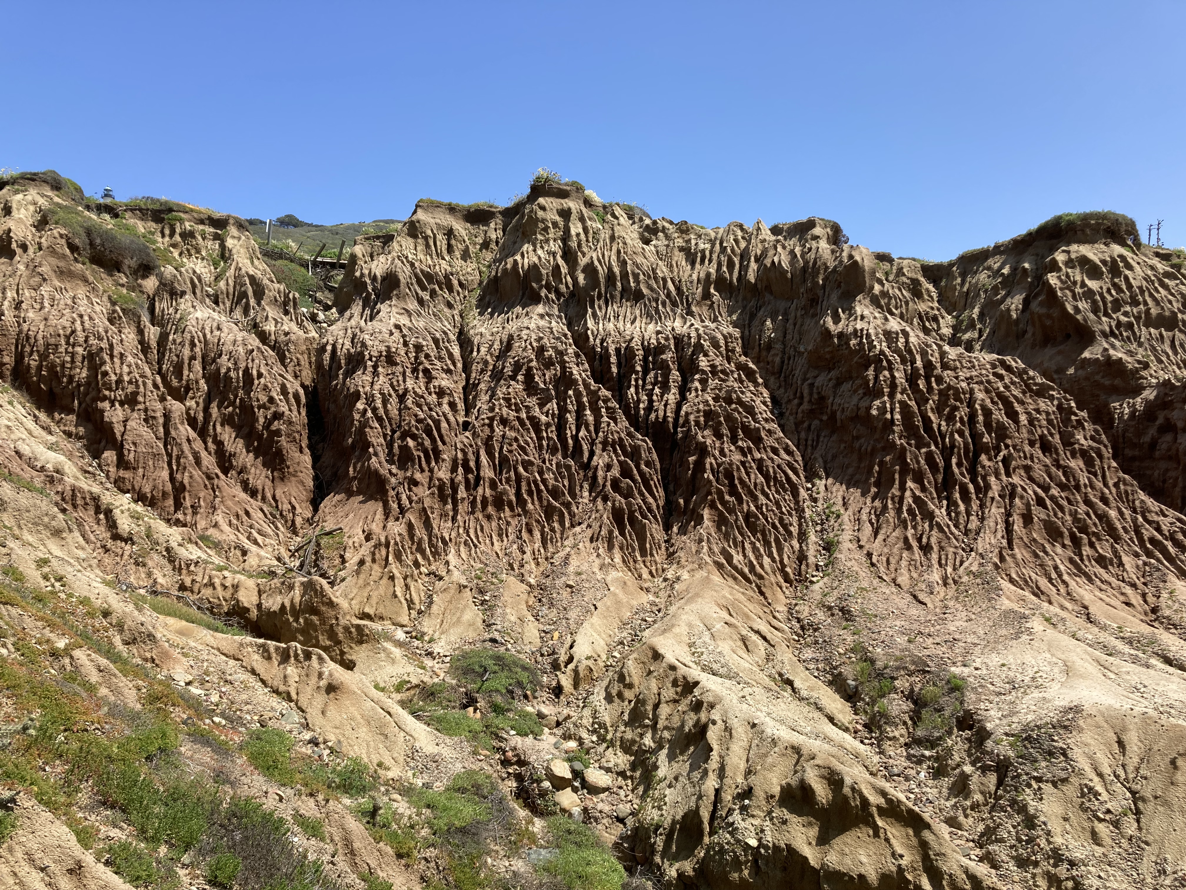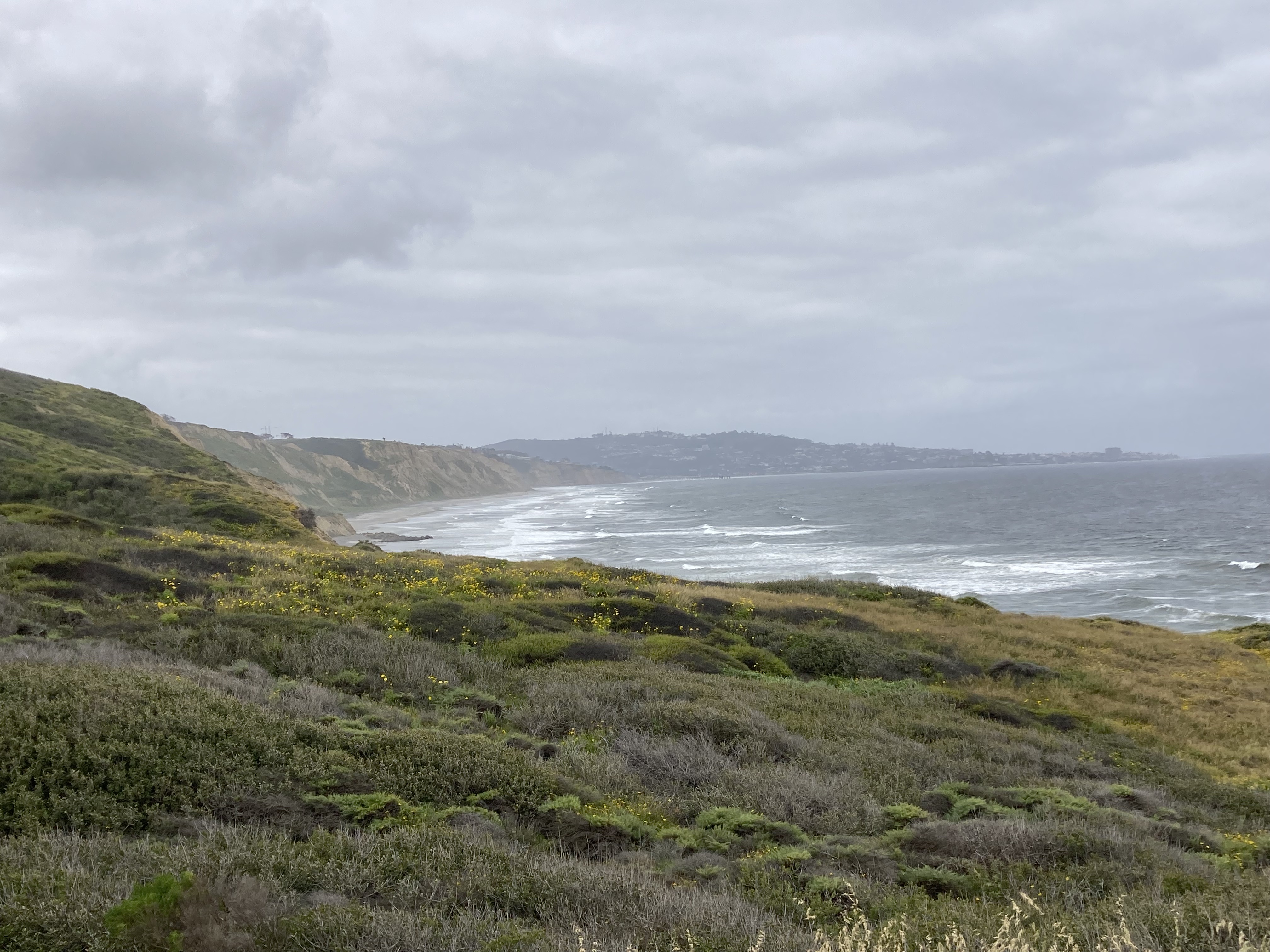Torrey Pines is just a five minute drive south of Del Mar. It’s a coastal state park and reserve, with stretches of beach, from which rise sandstone bluffs, with hiking trails through elevated protected lands covered in chaparral, and home to the rare Torrey pine tree.