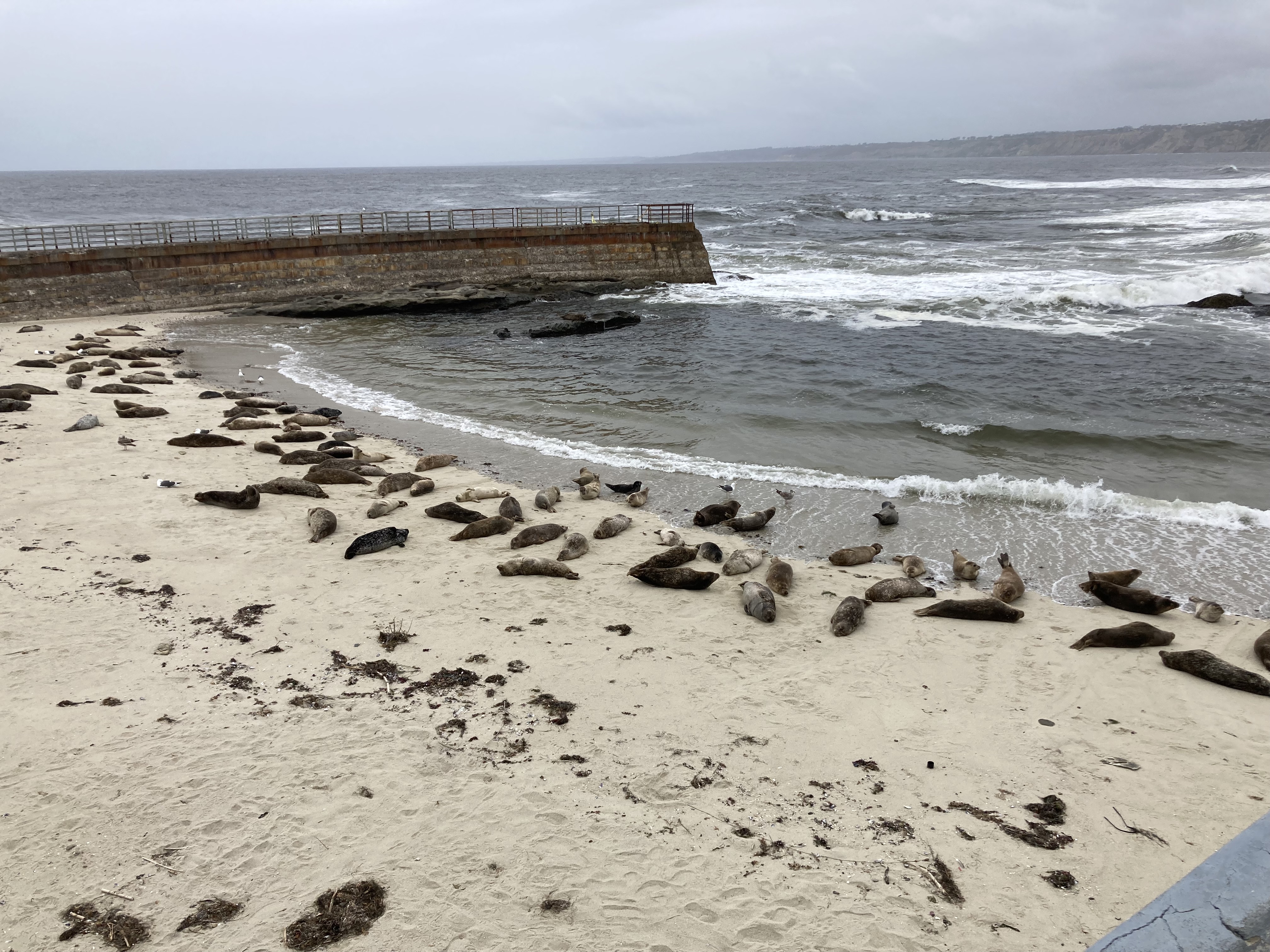 A little south of La Jolla Shores is La Jolla, where you can find the “Children’s Pool“. Contrary to its name, it’s actually a small beach with a sea wall that is a popular spot for harbour seal viewing. It’s in the downtown area of La Jolla and there are a few areas you could explore around here along the coast (tide pools, caves, parks).