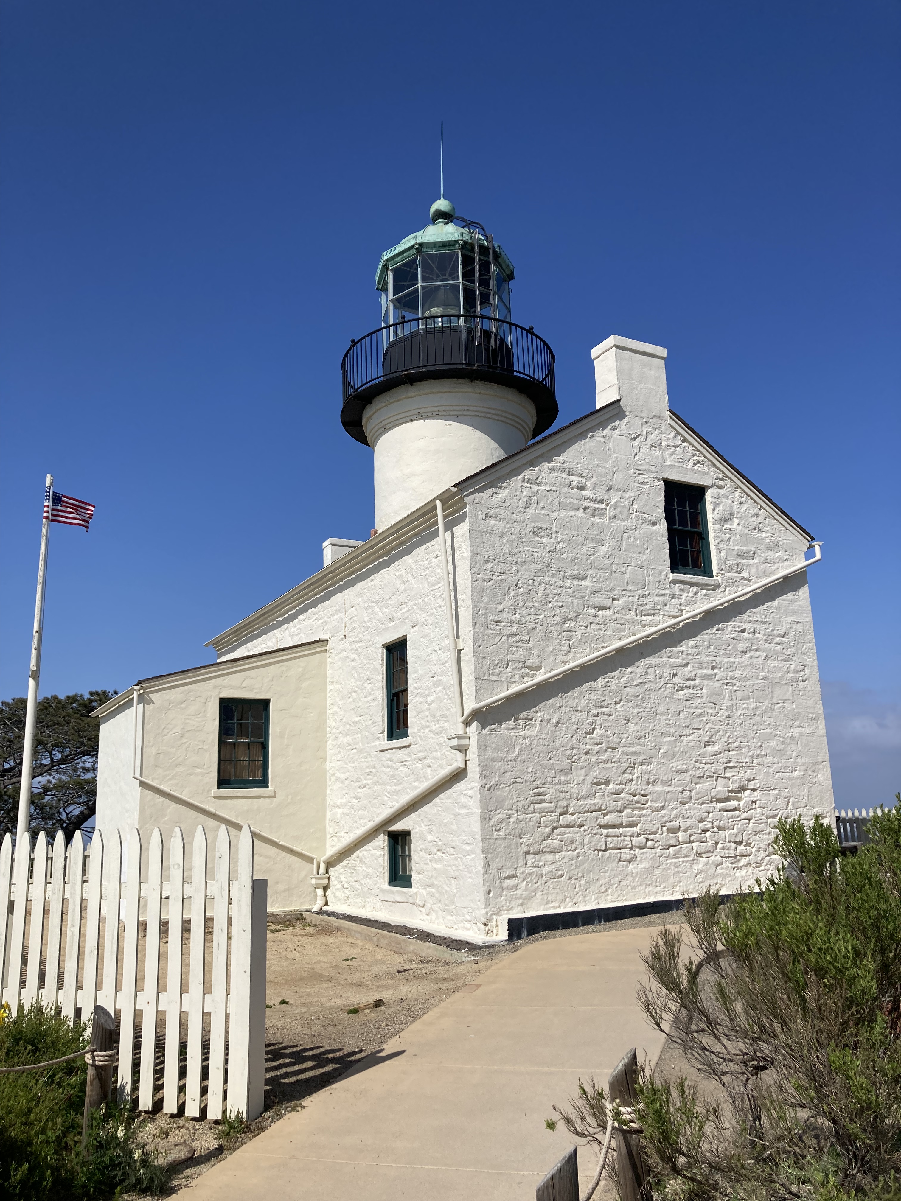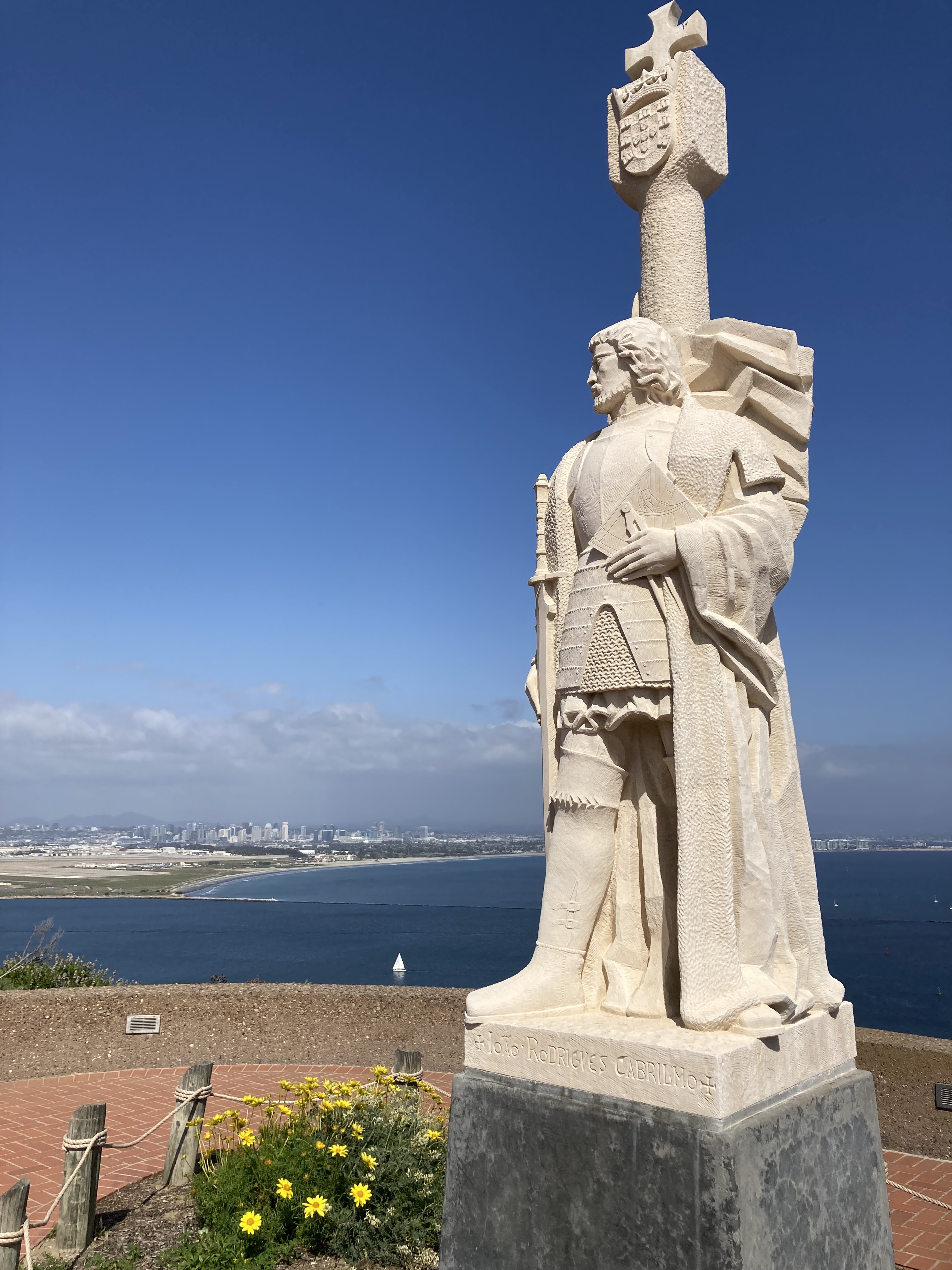 The visitor centre has exhibits that explain a lot of the history of the area. Primarily, this area focuses on Juan Rodriguez Cabrillo, the first European to touch down on the west coast of North America. Cabrillo landed at San Diego Bay in 1542, 50 years after Columbus landed on the east coast (in the province I grew up in, Newfoundland). You do hear about Cabrillo in many towns along California’s southern coast. Taking in this history demands mindfulness of colonization and evangelism. Behind the statue of Cabrillo are views across San Diego Bay to the downtown San Diego skyline, Coronado and the Naval Base, and even to Mexico. It is a short walk to the 1854 lighthouse, and trails with sage brush and ocean views, where whales can be seen migrating throughout the year.