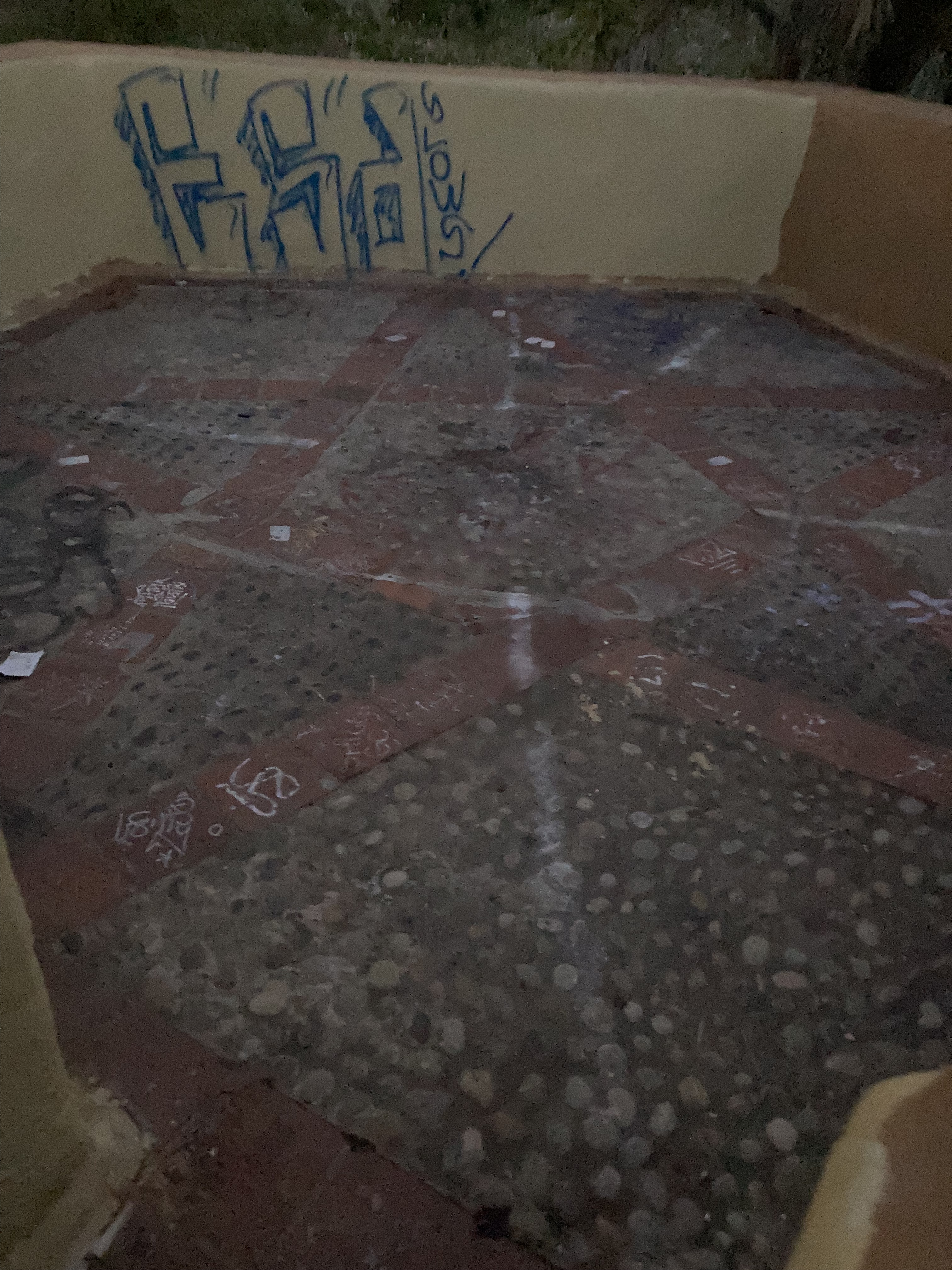 After having a margarita I wanted to kill some time before driving, and somehow I had come across something called the Witches Tower nearby. Being me, I was curious and headed out for a little walk to explore. It’s located in Presidio Park, just beyond Old Town. The park is home to the Junípero Serra Museum as well as the Junípero Serra Cross, made from fragments of the presidio’s ruins. The Witches Tower was underwhelming visually. The history of it is as a memorial and old holding cell. But the upper level has a pentagram as part of the stone floor, which puts people on edge. People claim it has been used as a place for occult practices, with candle wax drippings, among other remnants and eerie stories.